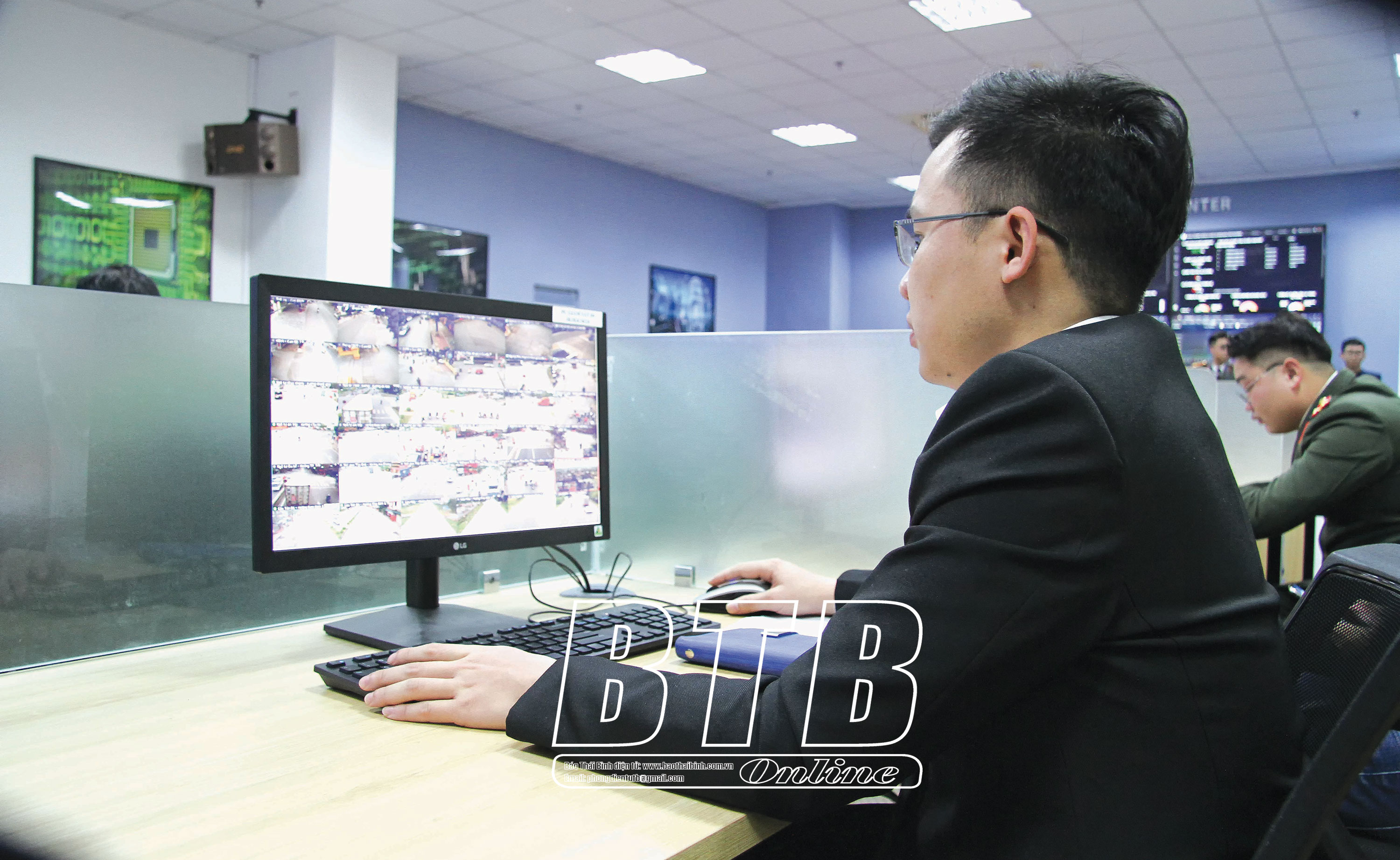 Cán bộ kỹ thuật vận hành thử nghiệm hệ thống camera thông minh thực hiện giám sát an ninh, giao thông.