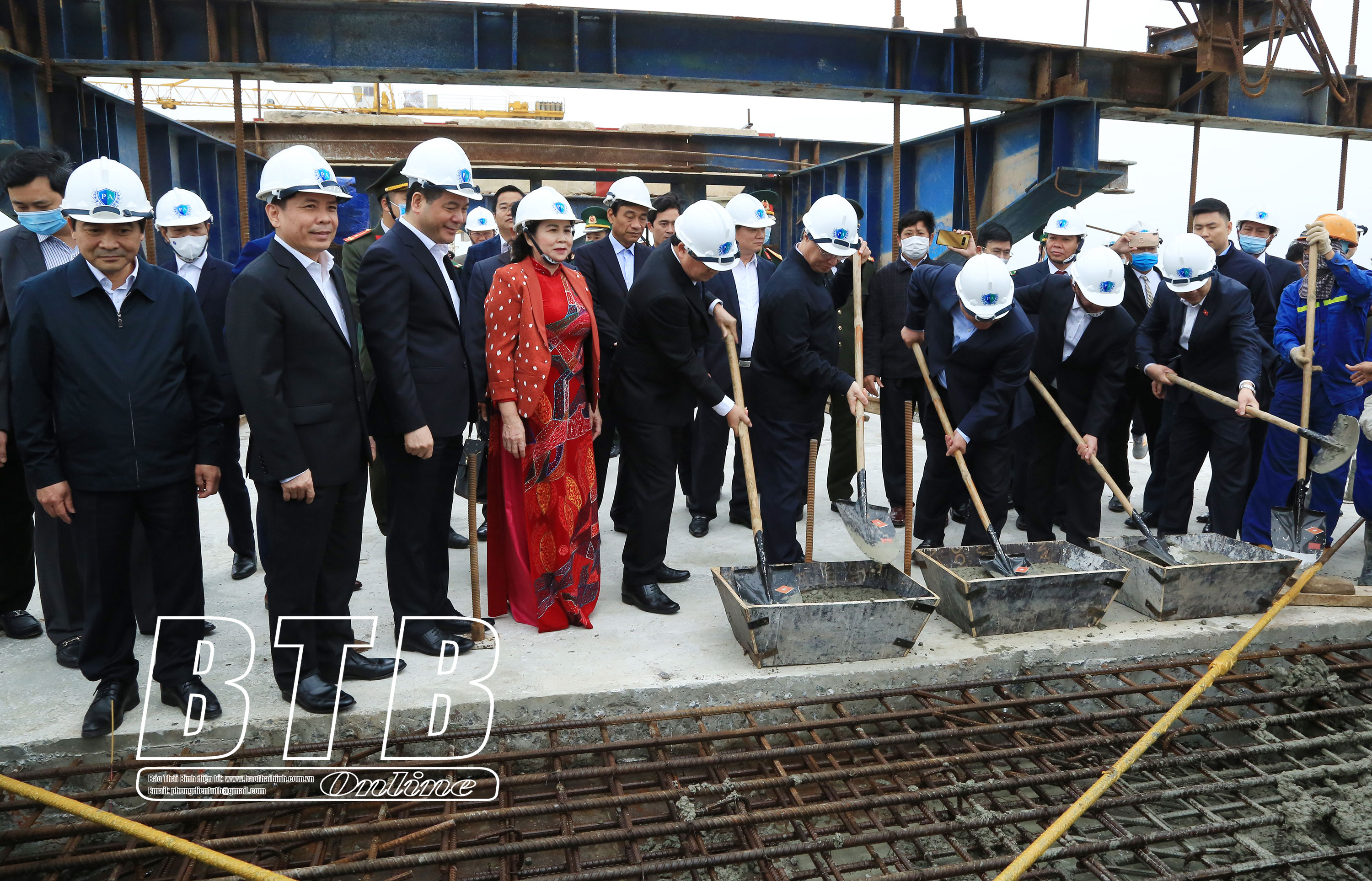 Tại buổi lễ, các đồng chí lãnh đạo Đảng, Nhà nước, một số ban, bộ, ngành trung ương, các đồng chí lãnh đạo tỉnh và đại diện nhà đầu tư đã bấm nút phát lệnh và thực hiện nghi thức hợp long cầu vượt sông Trà Lý. Đây là công trình chào mừng thành công Đại hội Đại biểu toàn quốc lần thứ XIII của Đảng và Đại hội Đảng bộ tỉnh lần thứ XX.