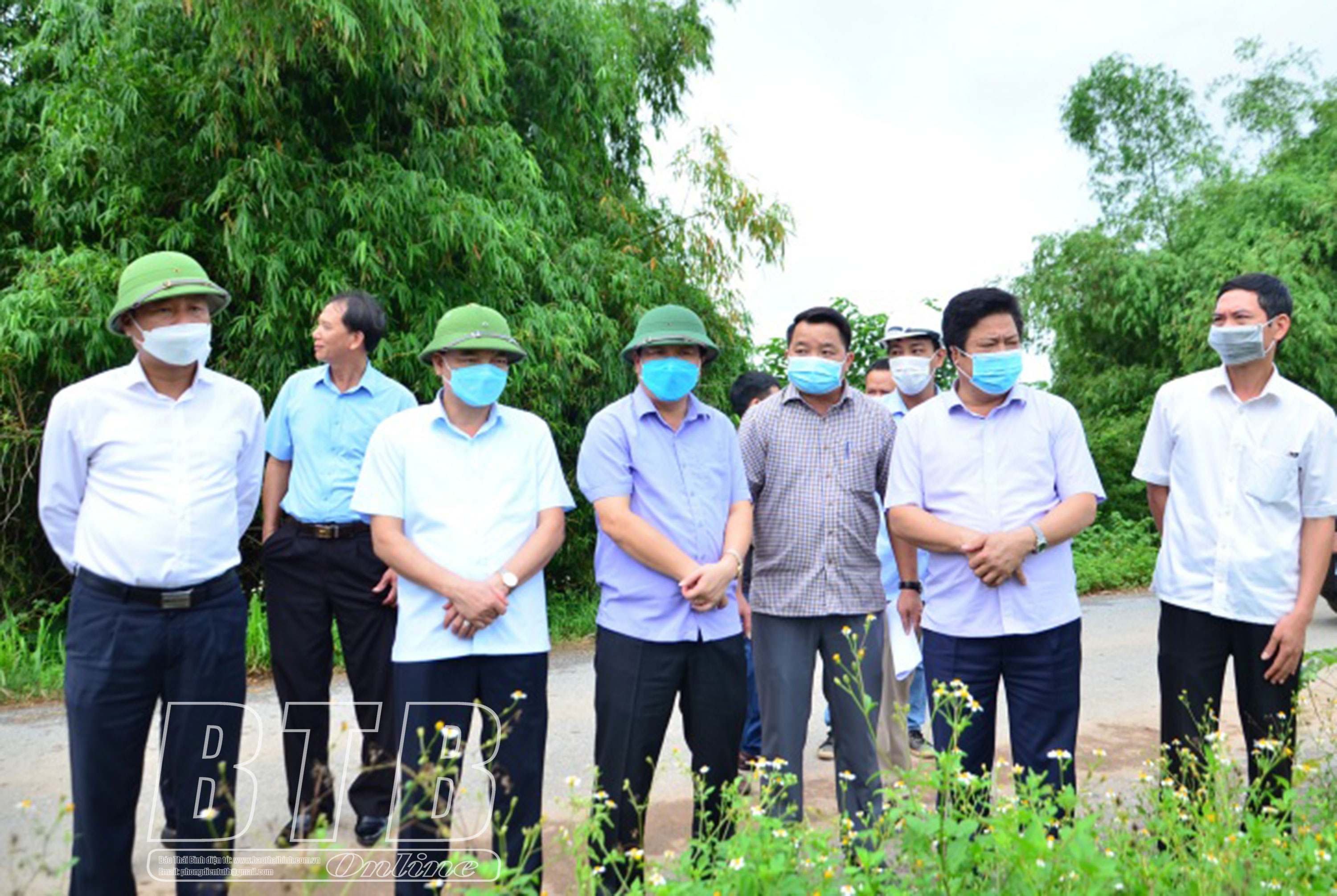 Các đồng chí lãnh đạo tỉnh kiểm tra tiến độ thi công tuyến đường từ thành phố Thái Bình qua cầu Tịnh Xuyên đến huyện Hưng Hà.