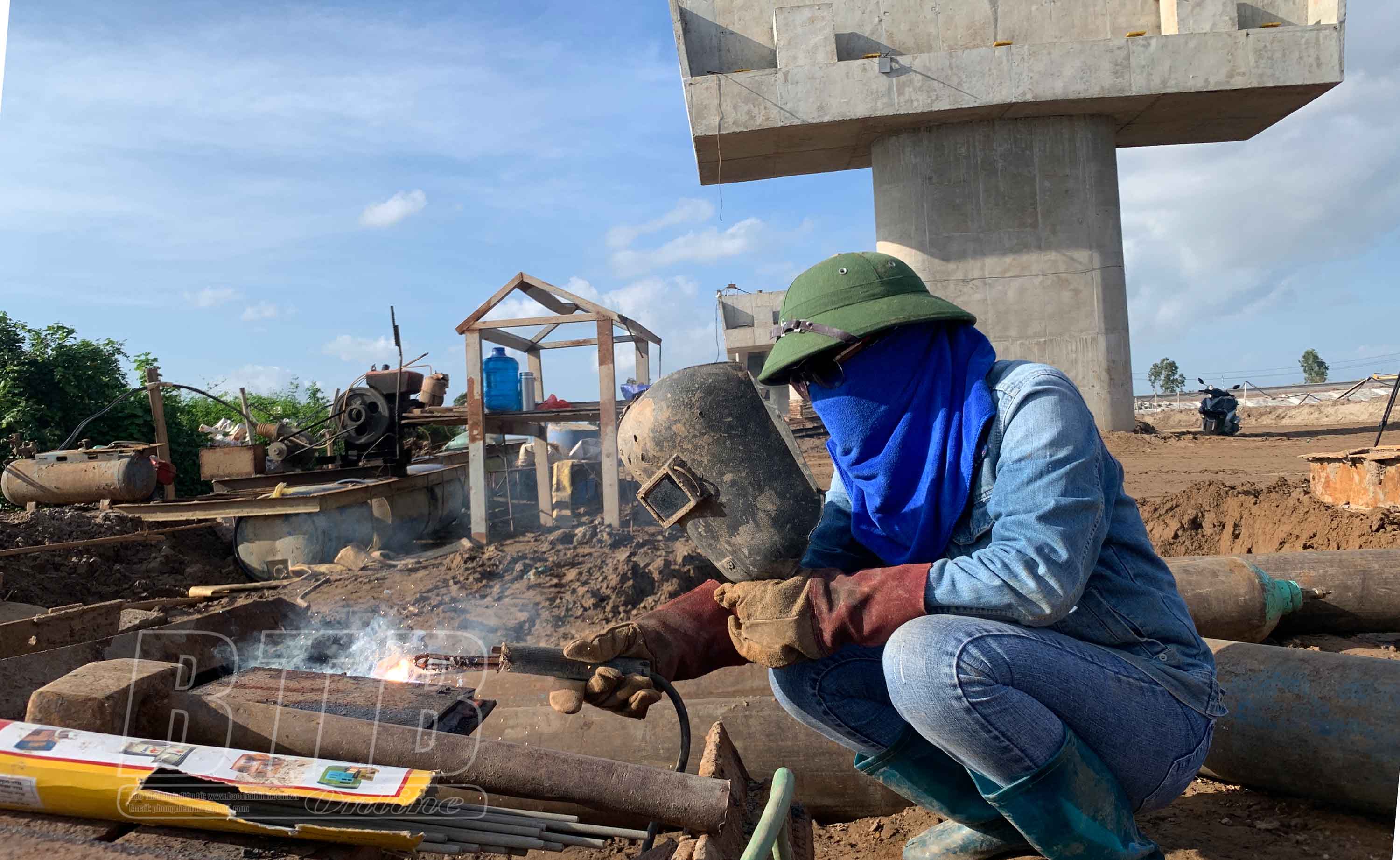 Đơn vị thi công khẩn trương thi công hạng mục cầu Diêm Điền.