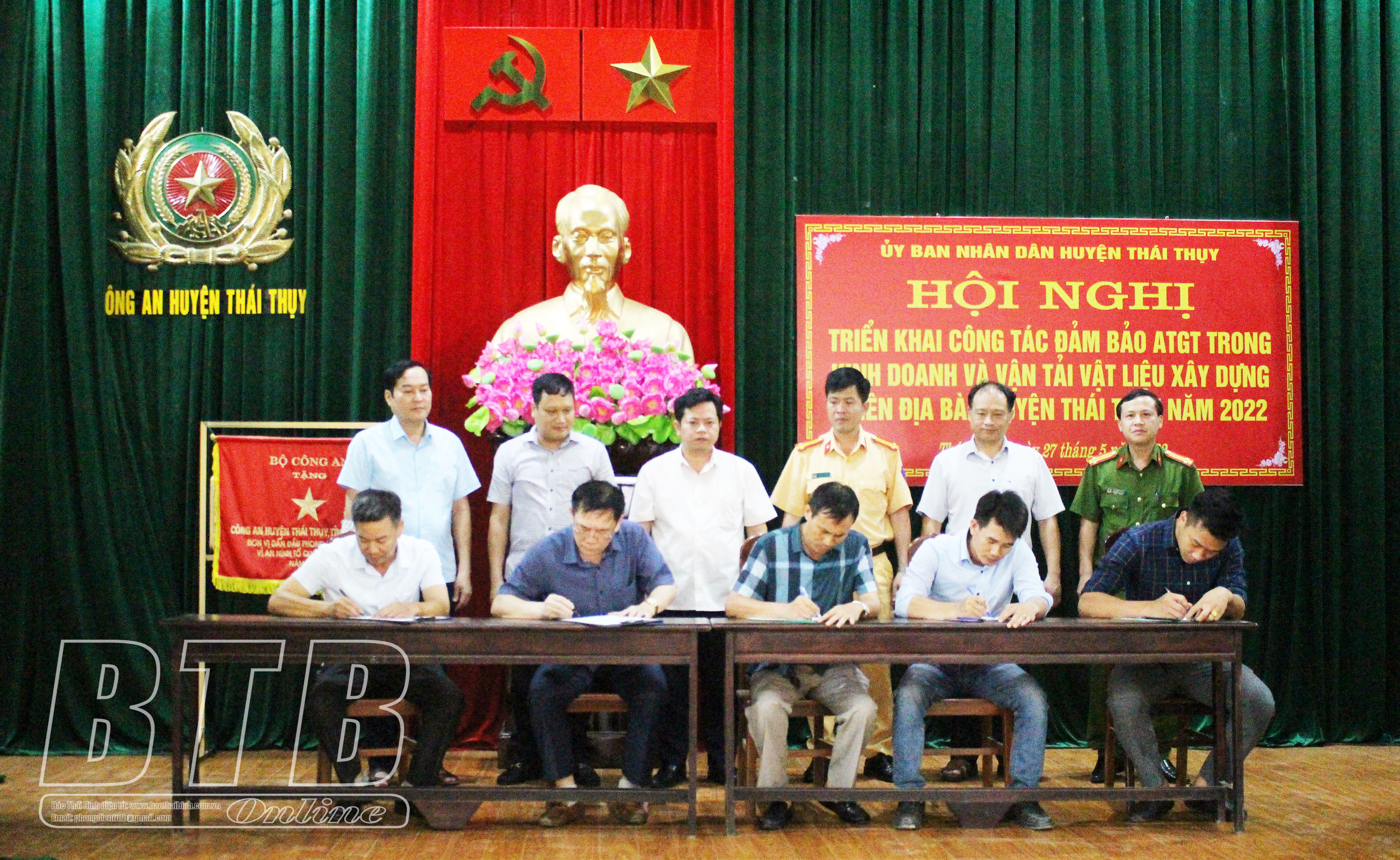 Huyện Thái Thụy tổ chức ký cam kết đối với các chủ doanh nghiệp, chủ phương tiện và chủ bến bãi kinh doanh vật liệu xây dựng, dịch vụ vận tải.