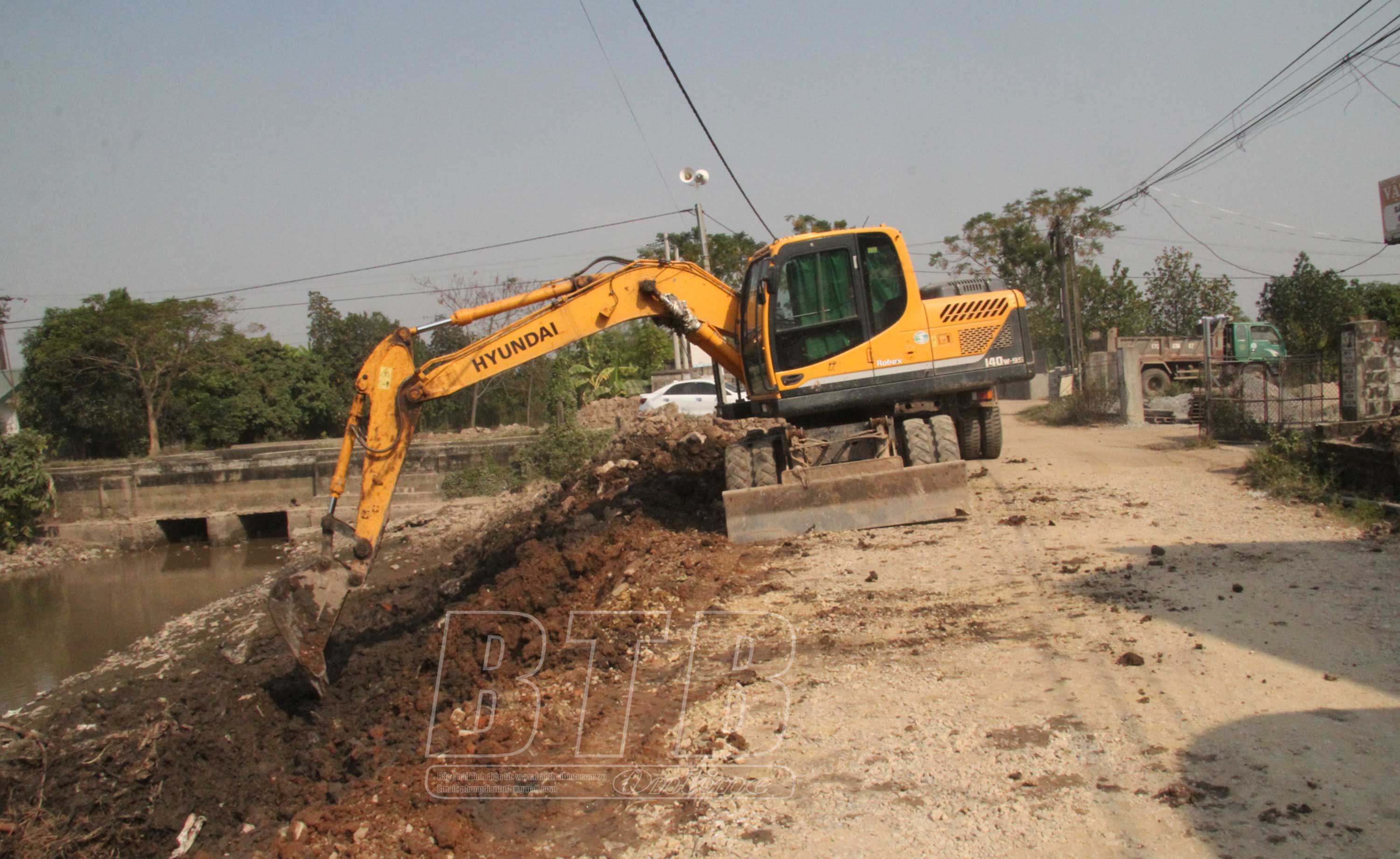 Đẩy nhanh tiến độ thi công tuyến đường ĐT.452 đoạn qua xã Dân Chủ.