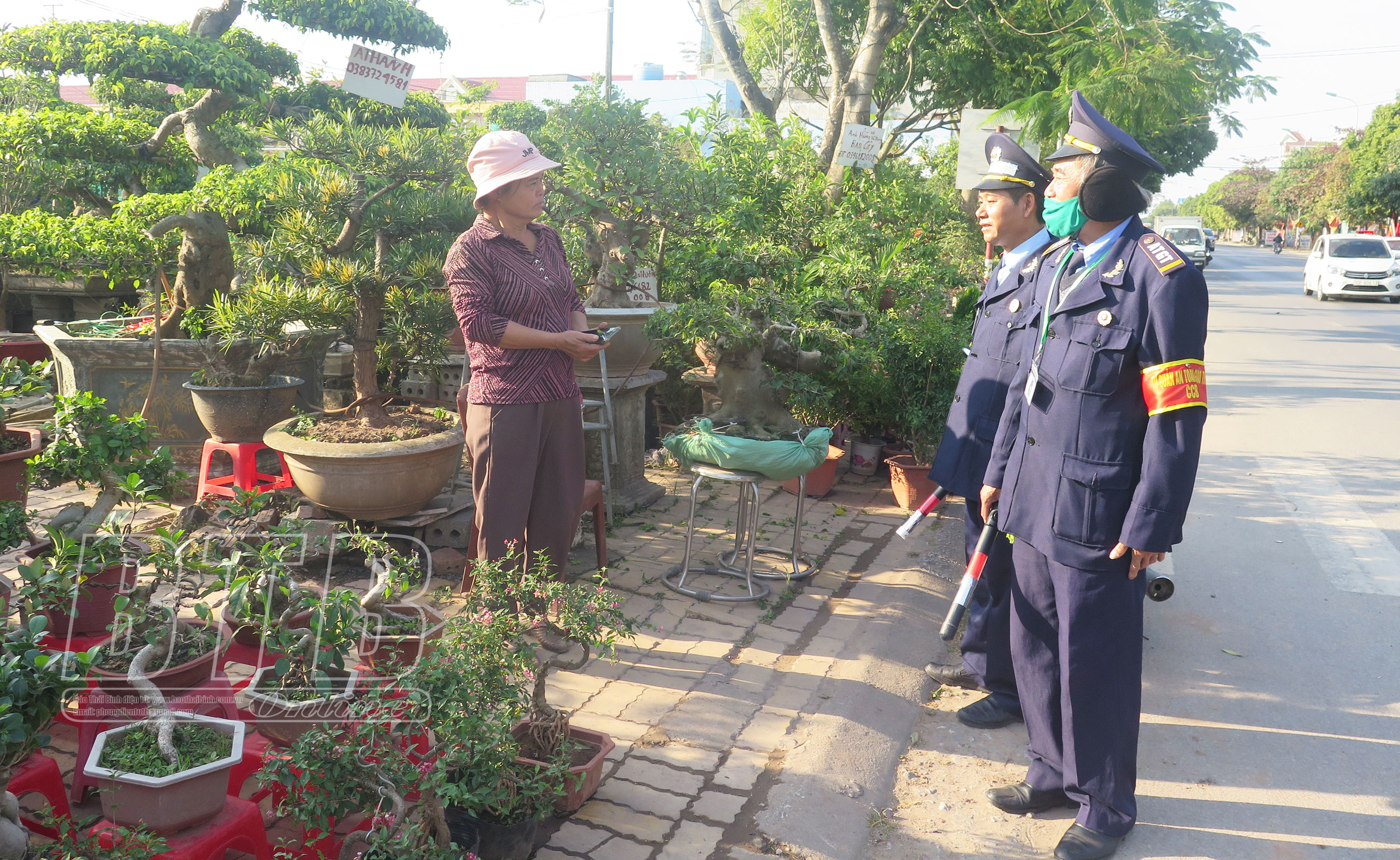 Tổ tự quản xã Vũ Quý nhắc nhở người dân không lấn chiếm vỉa hè, lòng lề đường.