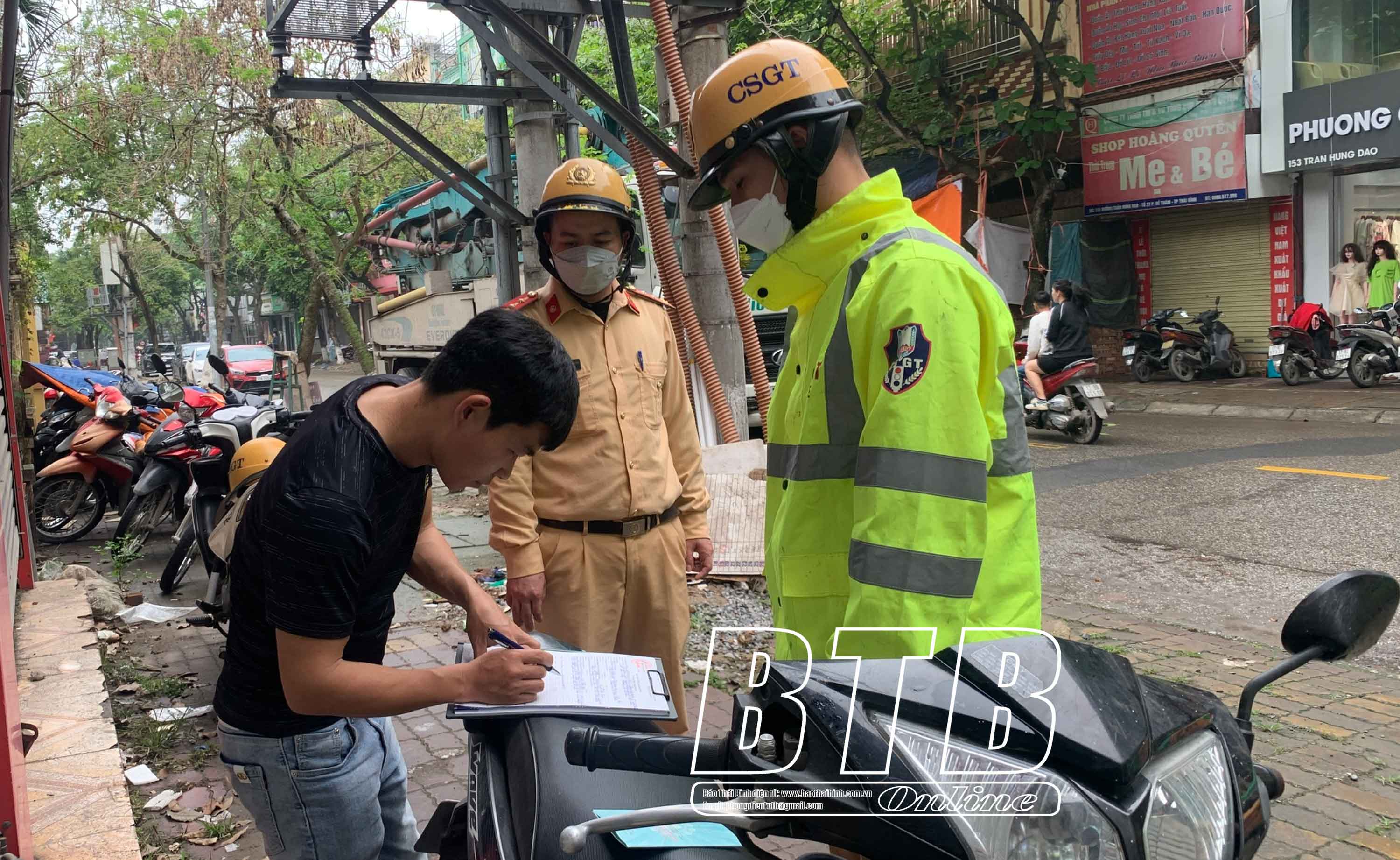 Lực lượng cảnh sát giao thông lập biên bản xử lý vi phạm.
