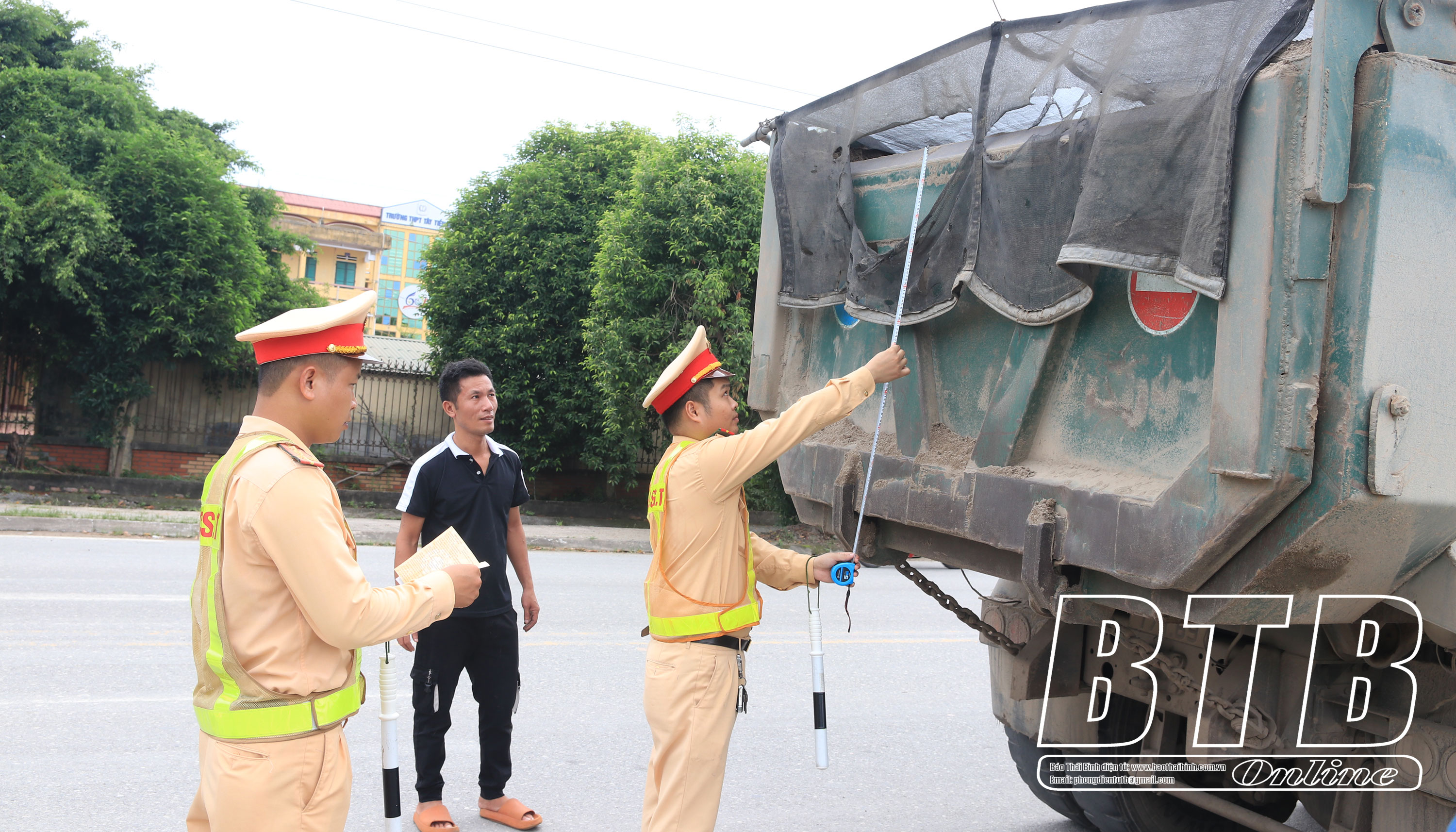 Lực lượng CSGT Tiền Hải tuần tra, xử lý vi phạm về tải trọng.
