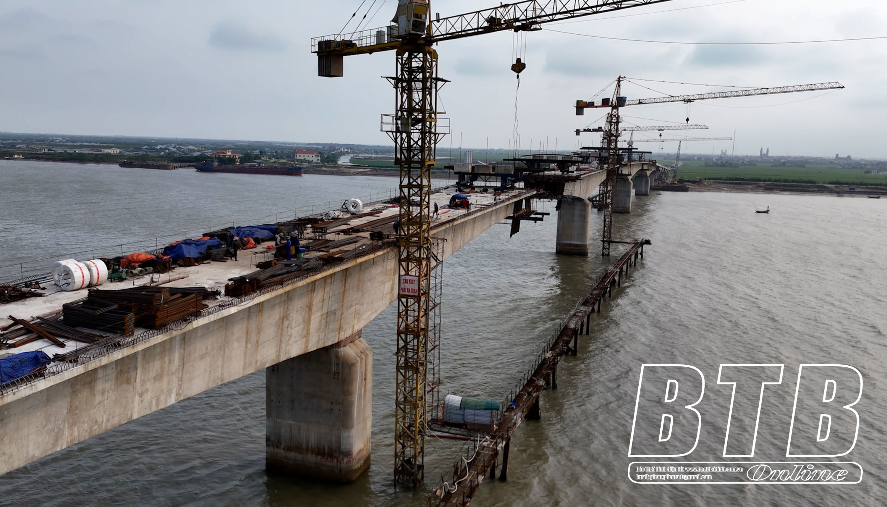 Riêng công trình cầu sông Hồng bắc qua sông Hồng nối hai huyện Tiền Hải (Thái Bình) và Giao Thủy (Nam Định) có chiều dài 1.400m đang bước vào giai đoạn nước rút quan trọng, chuẩn bị hợp long các nhịp chính (5 nhịp đúc hẫng ở giữa sông). Khối lượng công việc lớn, đòi hỏi độ chính xác cao nên từng mũi thi công đang phát huy tối đa năng lực bảo đảm tiến độ, chất lượng.