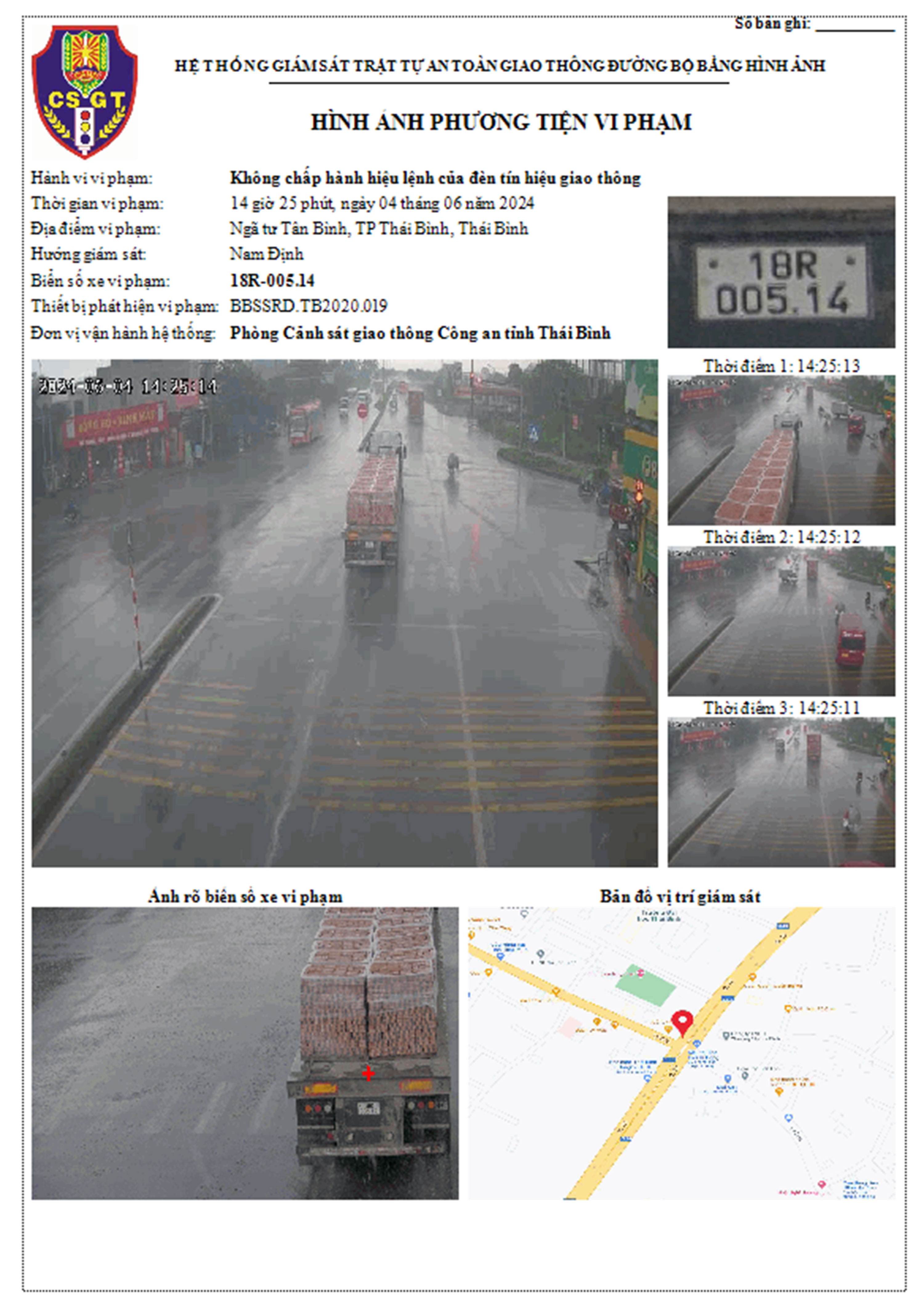 Theo đó, thông qua hệ thống camera giám sát thông minh tại các nút giao thông trọng điểm trên địa bàn tỉnh Thái Bình, lực lượng chức năng đã ghi nhận và xử lý 73 trường hợp vi phạm trật tự an toàn giao thông. Các trường hợp vi phạm giao thông chủ yếu là không chấp hành hiệu lệnh của đèn tín hiệu giao thông, vượt quá tốc độ quy định, không chấp hành hiệu lệnh, chỉ dẫn của biển báo hiệu, vạch kẻ đường. Trong đó, lỗi vượt quá tốc độ chiếm nhiều nhất với 53 trường hợp; lỗi không chấp hành hiệu lệnh của đèn tín hiệu giao thông là 20 trường hợp.