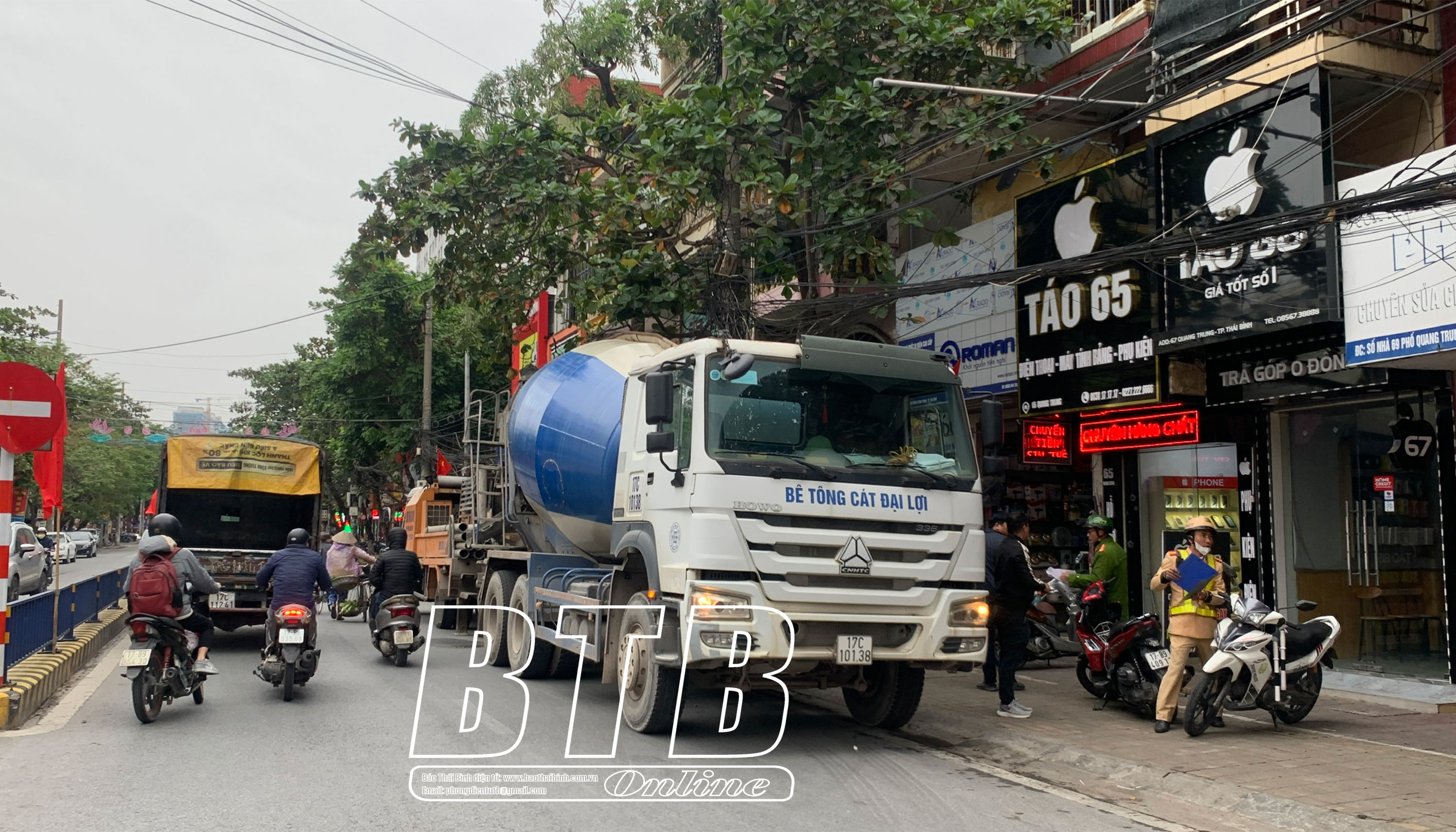 Xử phạt xe bồn bê tông dừng đỗ trái phép tại thành phố Thái Bình