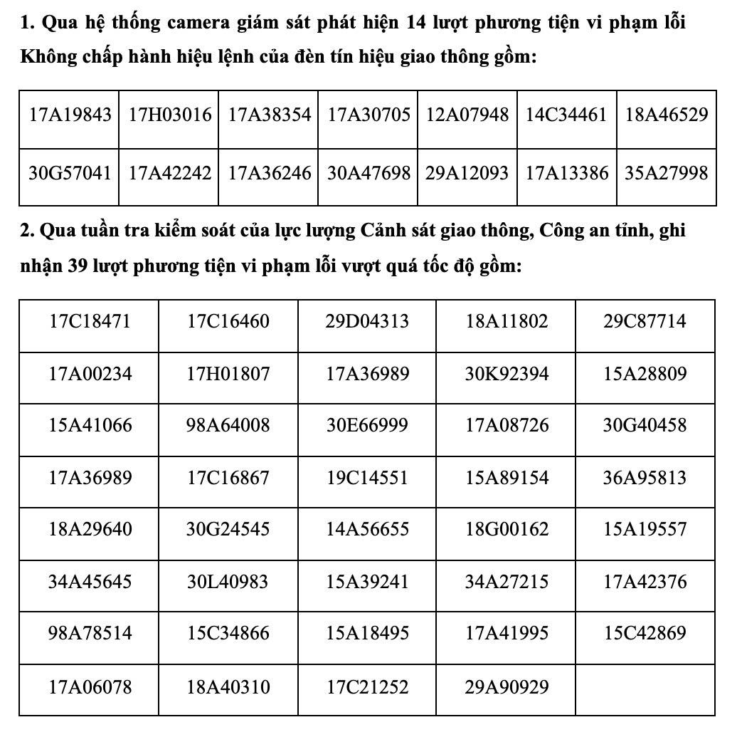 Theo báo cáo của Phòng Cảnh sát giao thông (Công an tỉnh), từ ngày 11-17/12, lực lượng cảnh sát giao thông đã ghi nhận 53 trường hợp phương tiện vi phạm Luật Giao thông đường bộ bị xử lý phạt nguội.