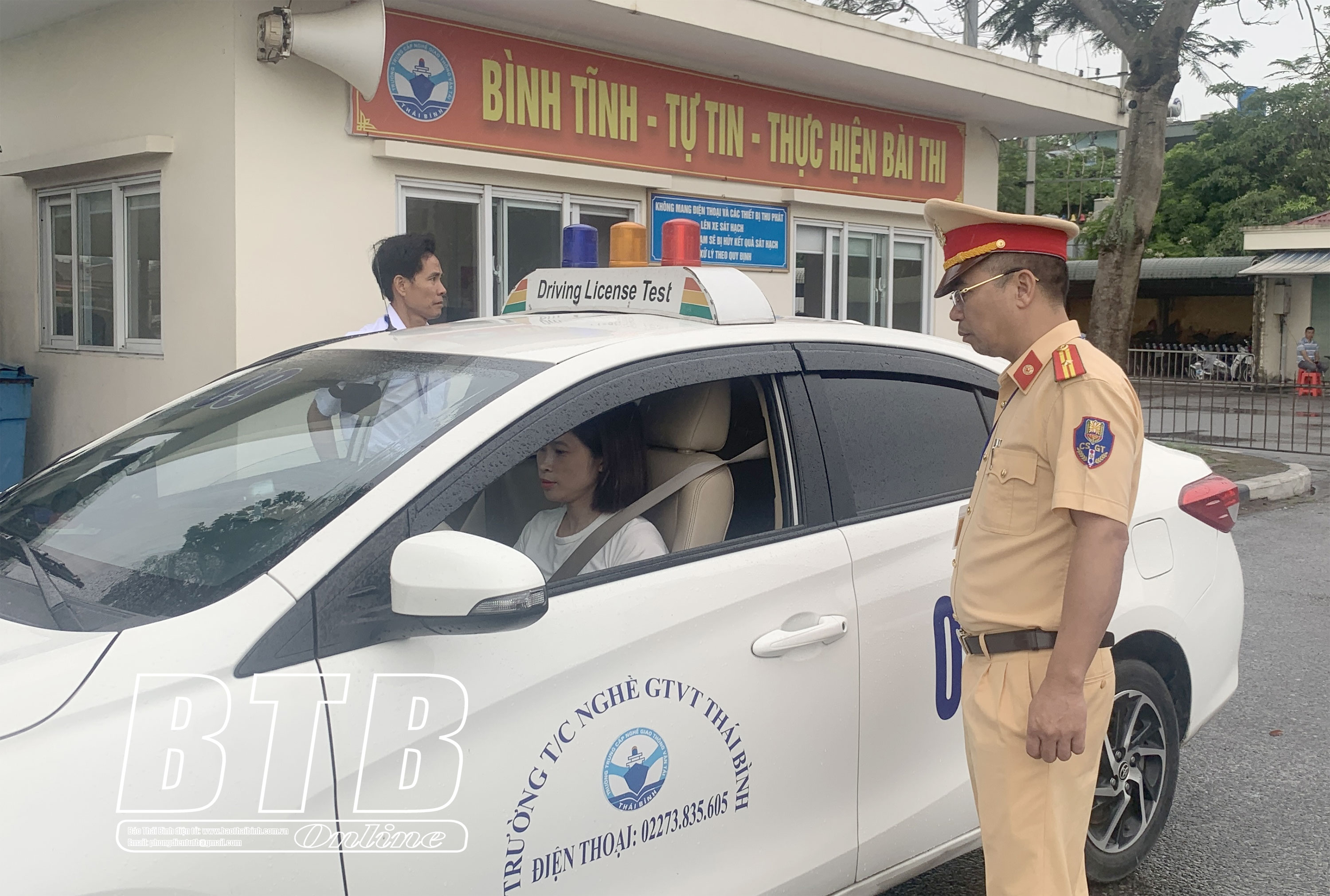 Tại Trung tâm Sát hạch lái xe (thuộc Trường Trung cấp Nghề giao thông vận tải Thái Bình), hoạt động sát hạch đang được triển khai hiệu quả, nhận được sự phối hợp tích cực giữa lực lượng công an và các đơn vị liên quan. Quy trình tổ chức thi được thực hiện chặt chẽ từ khâu hướng dẫn thí sinh, bố trí cơ sở vật chất đến công tác giám sát, chấm điểm. Các học viên lần lượt tham gia đầy đủ các phần thi lý thuyết, mô phỏng và thực hành lái xe trong khuôn viên trung tâm, lái xe trên đường theo đúng trình tự quy định. Những nội dung thi chưa đạt, thí sinh sẽ được đăng ký thi lại. Các nội dung đạt sẽ được bảo lưu kết quả trong vòng một năm. Mặc dù là lần tổ chức đầu tiên nhưng công tác tổ chức thi diễn ra thuận lợi, trật tự; từ đó, tạo tâm lý thoải mái cho thí sinh.