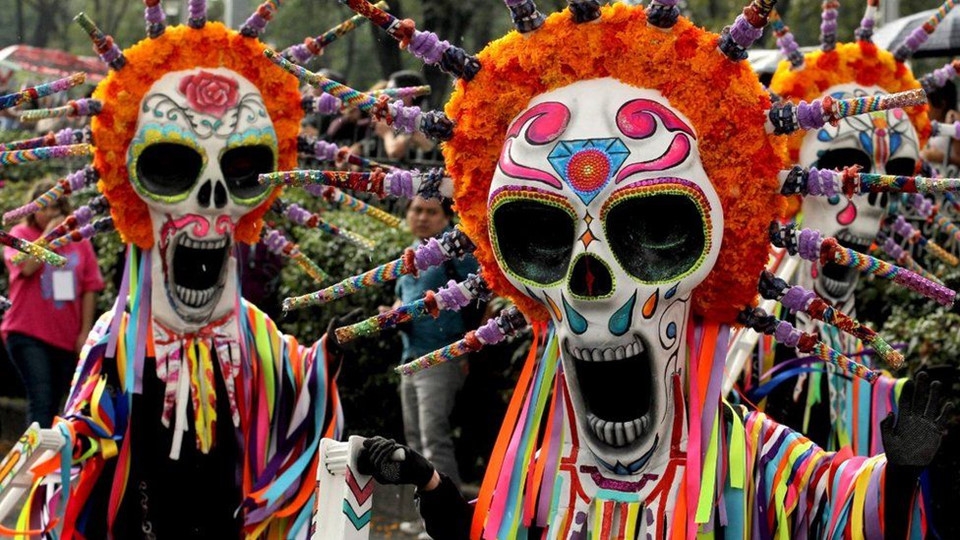 Día de Muertos là lễ hội lâu đời của Mexico diễn ra vào ngày 2/11 hàng năm với ý nghĩa tưởng nhớ những người thân đã khuất. Ngày này, đường phố Mexico được trang trí sặc sỡ, người dân hóa trang thành những hồn ma, các nghĩa địa thắp nến sáng rực, người ta trải đầy đường những cánh cúc vạn thọ màu vàng để làm cầu nối dẫn người đã khuất về nhà.