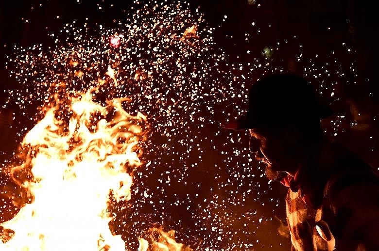 Lửa được đốt lên ở khắp nơi, sáng rực trong đêm như ngọn đuốc khổng lồ.