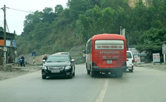 Một xe khách lấn làn, lấn tuyến trên QL18 đoạn qua phường Quang Hanh, thành phố Cẩm Phả. (Ảnh minh họa: Báo Quân đội Nhân dân điện tử)