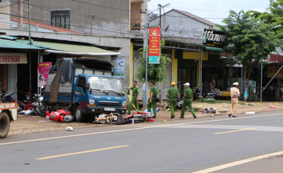 Hiện trường vụ tai nạn giao thông nghiêm trọng tại Đắk Nông khiến 5 người chết, 5 người bị thương (Ảnh: TTXVN)
