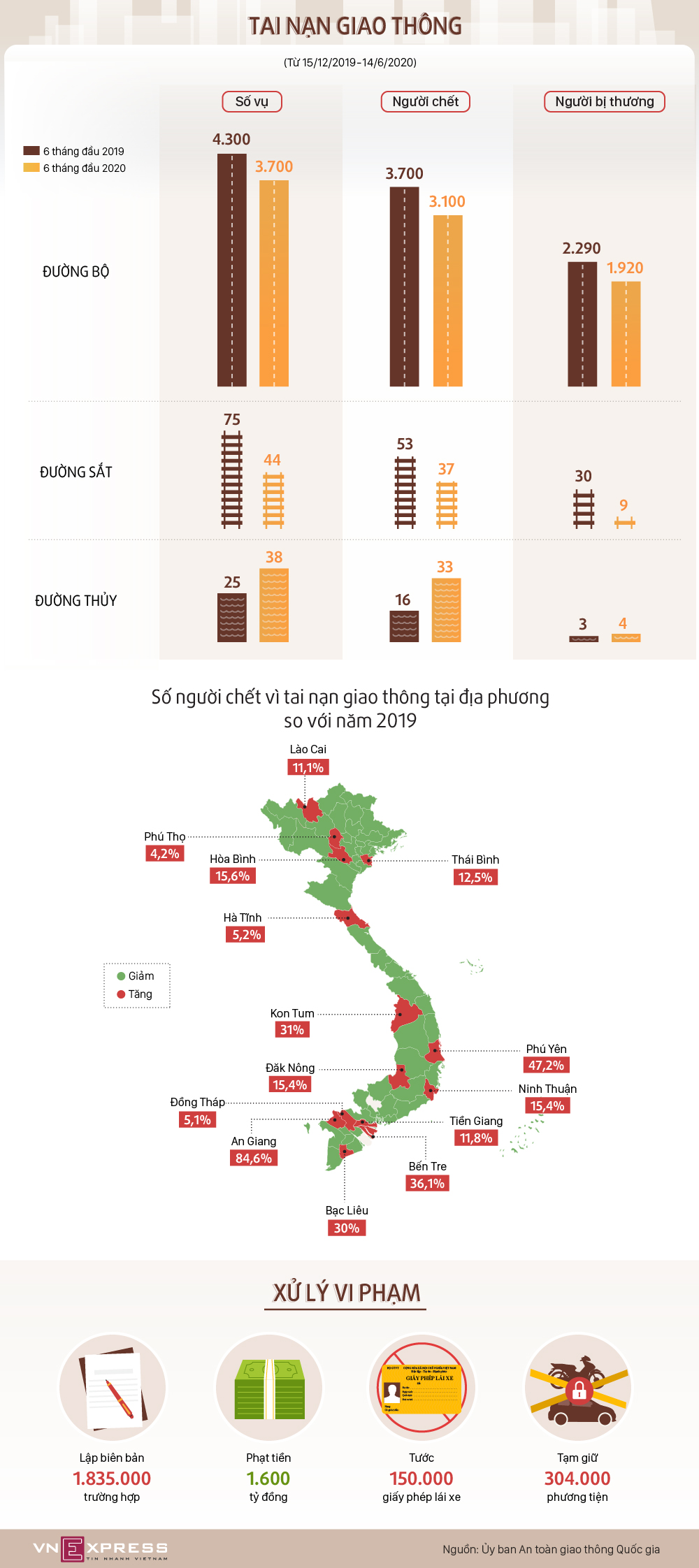 Số người tử vong vì tai nạn giao thông 6 tháng đầu năm 2020 đã giảm mạnh so với năm trước, song vẫn còn trung bình 17 người chết mỗi ngày.