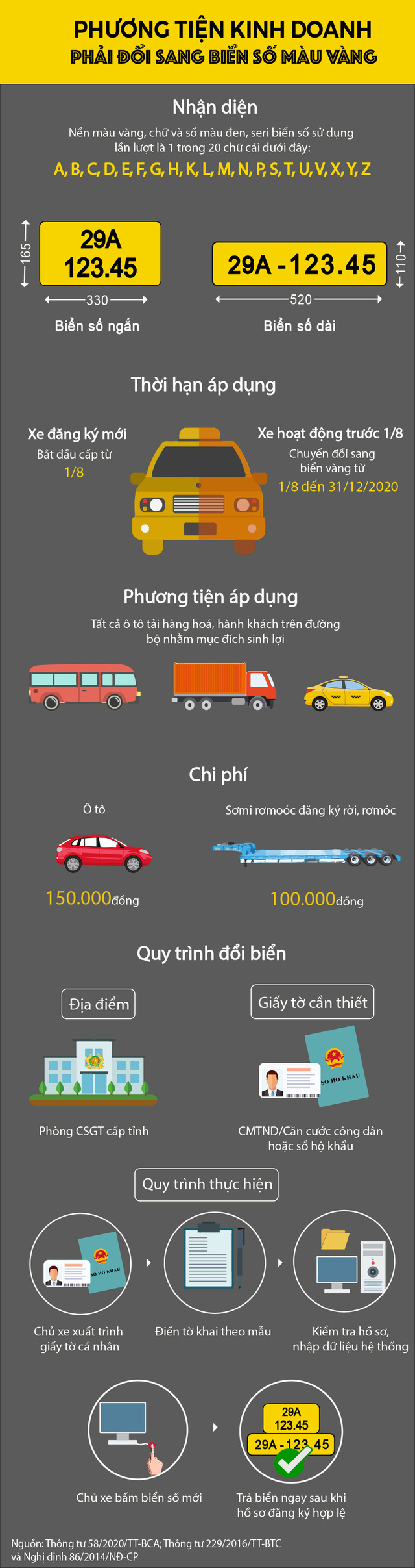 Các phương tiện kinh doanh sẽ phải đổi biển số màu vàng với chi phí từ 100.000 - 150.000đ, việc đổi biển được thực hiện tại phòng CSGT cấp tỉnh.