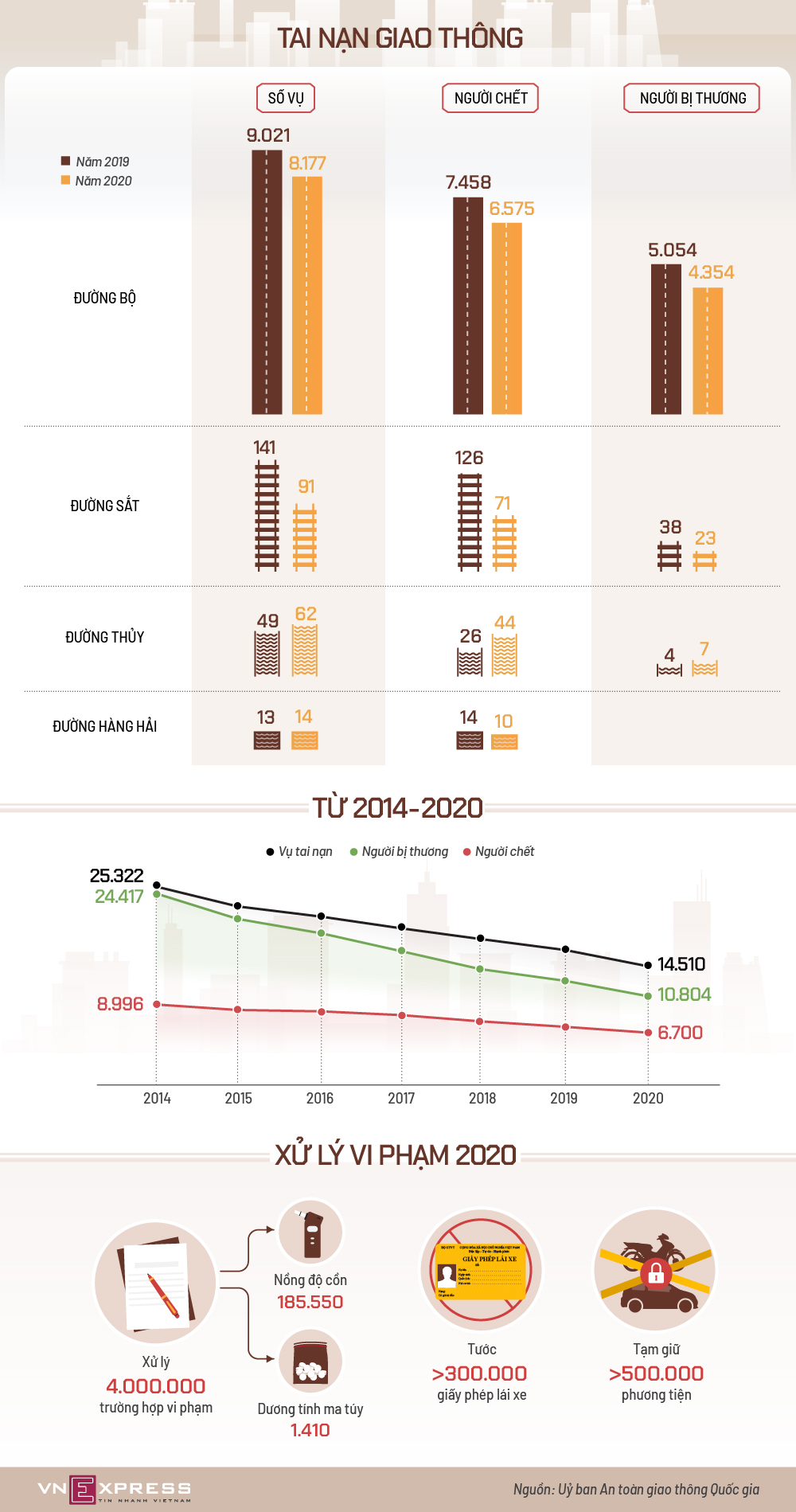 Số người chết do tai nạn giao thông năm 2020 đã giảm so với các năm trước, song vẫn ở mức cao với 18 người tử vong mỗi ngày.