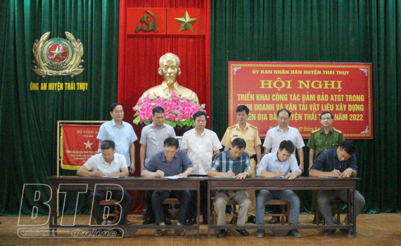 UBND huyện Thái Thụy đã tổ chức ký cam kết đối với các chủ doanh nghiệp, hộ kinh doanh vật liệu xây dựng, dịch vụ vận tải.