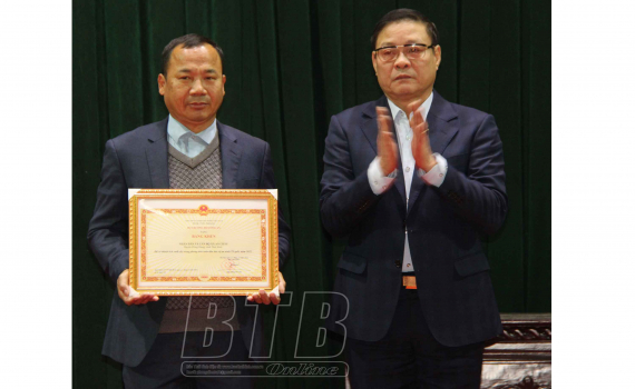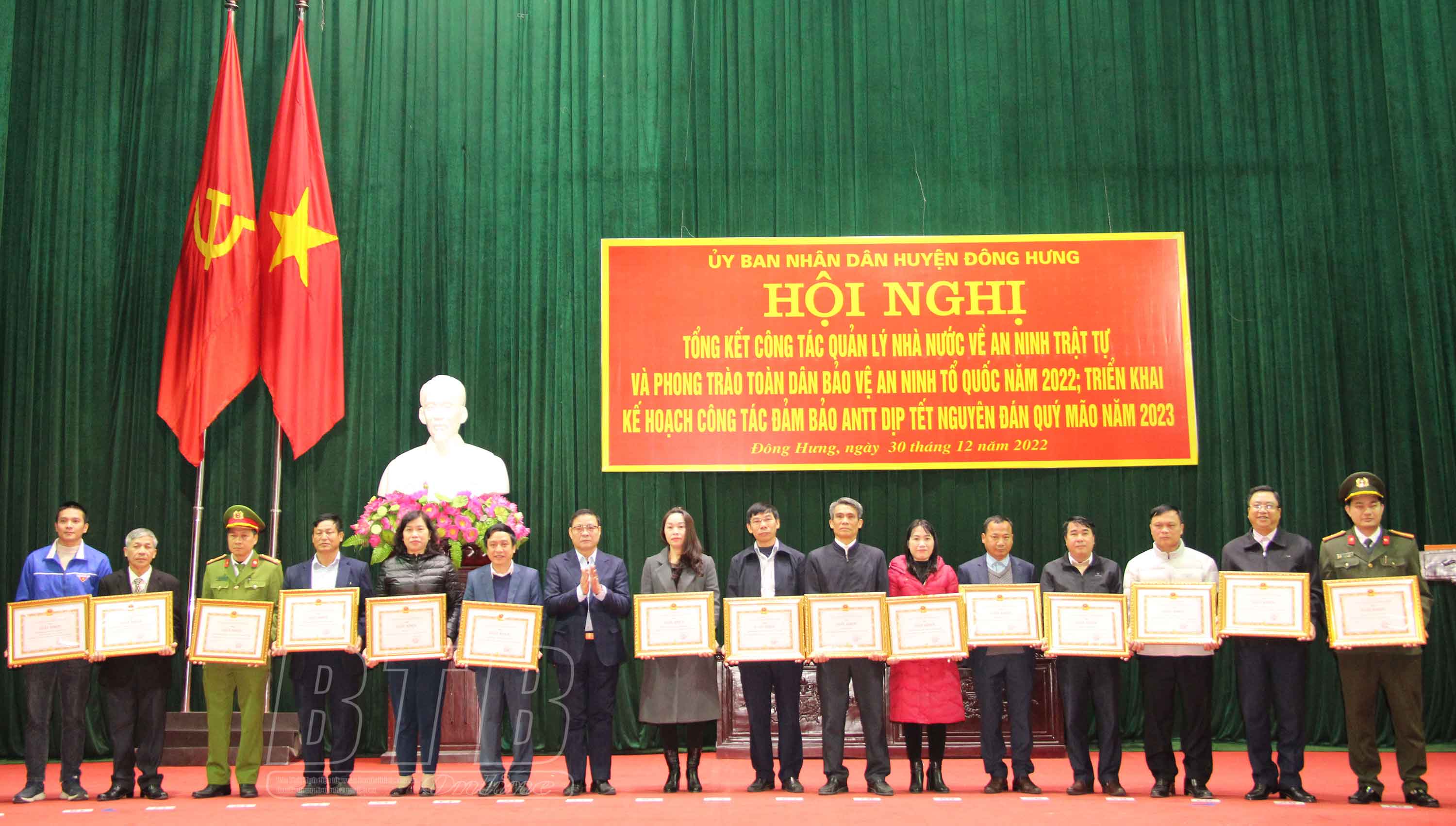 Lãnh đạo huyện Đông Hưng tặng giấy khen cho các tập thể có thành tích xuất sắc trong phong trào bảo vệ an ninh Tổ quốc.