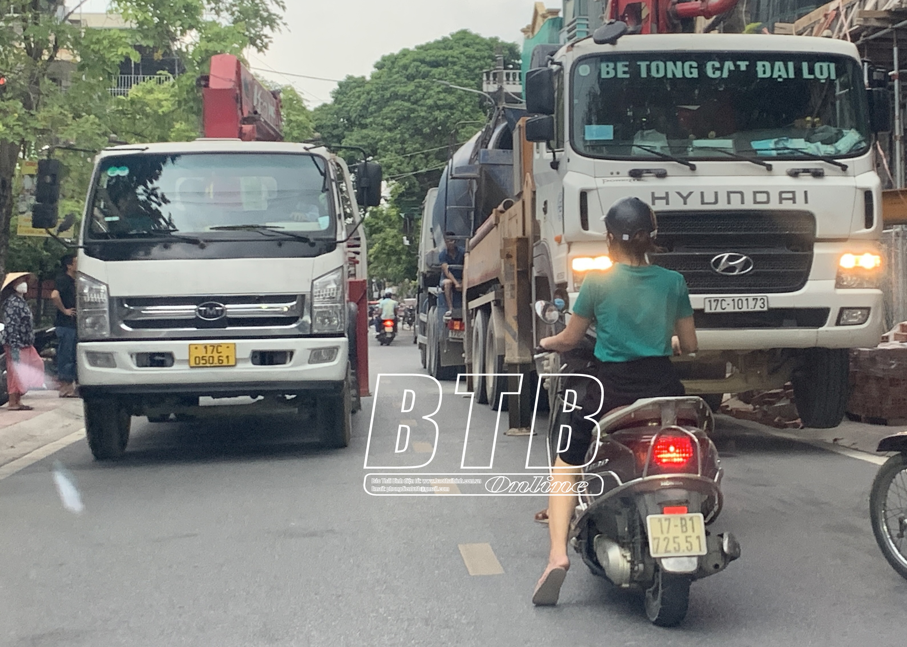 Thành phố Thái Bình: Xe bồn bê tông dừng đỗ trên đường phố gây ách tắc giao thông