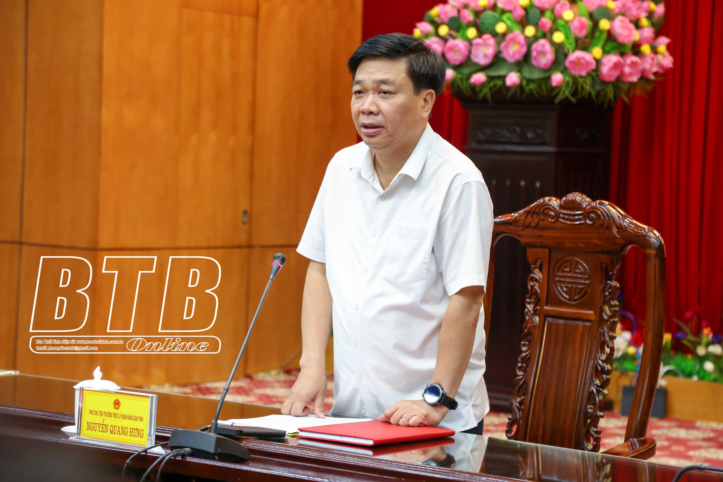 Đồng chí Nguyễn Quang Hưng, Ủy viên Ban Thường vụ Tỉnh ủy, Phó Chủ tịch thường trực UBND tỉnh, Phó trưởng Ban An toàn giao thông tỉnh phát biểu tại cuộc họp.