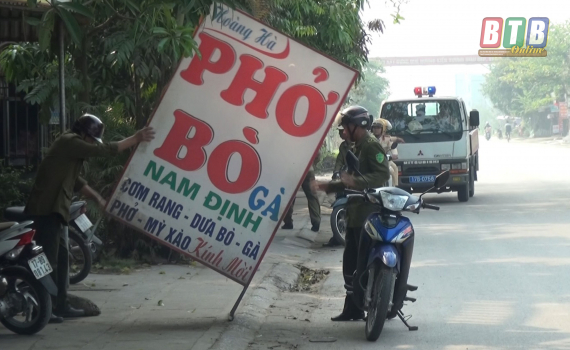 Kiến Xương ra quân xử lý nghiêm các trường hợp tái lấn chiếm lòng lề đường và hành lang ATGT đường bộ