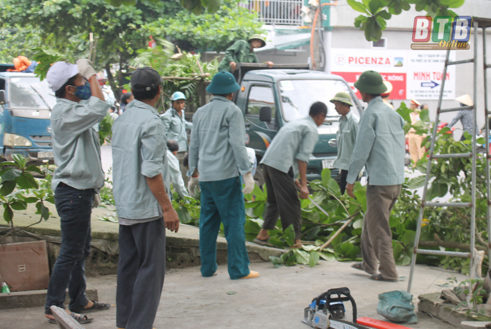 Cắt tỉa cành cây, thực hiện thu gom rác, tổng vệ sinh trên đoạn đường 454 gắn với sông T6 tại địa bàn xã Vũ Hội.