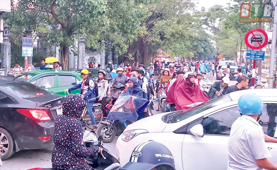 Đó là chia sẻ của nhiều phụ huynh khi đến đón con tại khu vực trước cổng Trường Tiểu học Kỳ Bá và Trường THCS Kỳ Bá (thành phố Thái Bình). Hầu như chiều nào cũng vậy, cứ đến khoảng 16 giờ 30 phút, hàng trăm xe máy dừng và chiếm trọn lòng đường gây ra cảnh ùn tắc giao thông kéo dài hơn 100m. Anh Trần Văn Hà, phụ huynh có con học lớp 1, Trường Tiểu học Kỳ Bá than thở: Ngày nào đi đón con tôi cũng gặp cảnh ùn tắc. Nhà tôi ở gần trường chưa đến 2km nhưng hôm nào cũng mất nửa tiếng mới len lỏi vào đón con được. Ông Nguyễn Văn Màu, nhà ở gần Trường Tiểu học Kỳ Bá chia sẻ: Nhiều phụ huynh đứng chờ con tràn cả xuống lòng đường khiến nhiều người muốn đi qua đoạn đường này vào giờ tan tầm cũng khó. Khổ nhất là có những bậc phụ huynh khóa cổ xe dựng giữa đường để vào trường đón con, có phụ huynh đón con xong thì ngang nhiên đi ngược chiều khiến tình trạng ùn tắc càng trở nên phức tạp hơn.
