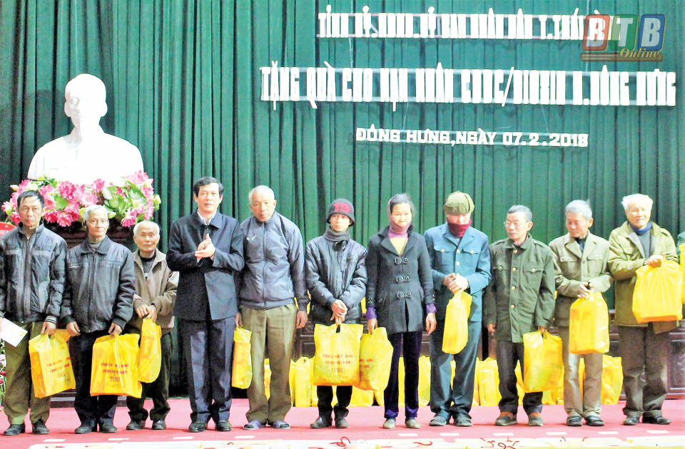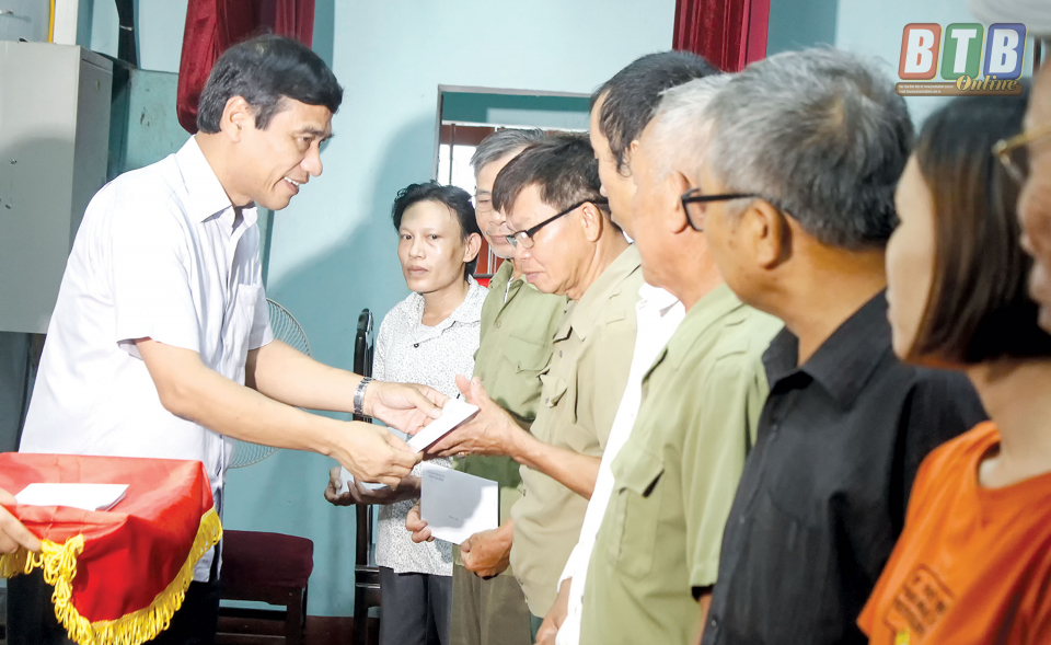 Đồng chí Nguyễn Hồng Chuyên, Ủy viên Ban Thường vụ, Trưởng ban Tuyên giáo Tỉnh ủy tặng quà cho nạn nhân chất độc da cam/Điôxin huyện Đông Hưng.