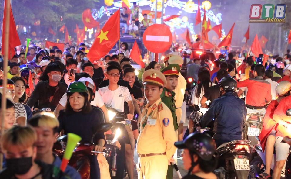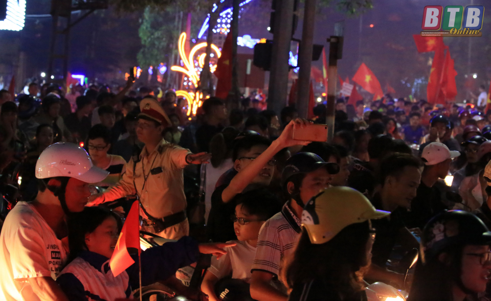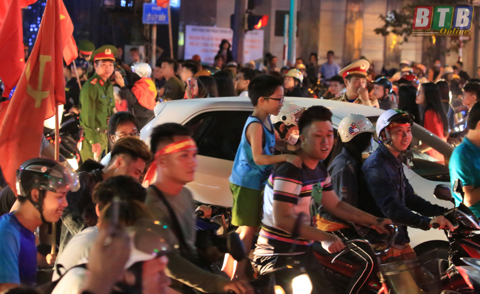 Dễ dàng nhận thấy phần lớn người hâm mộ đều không đội mũ bảo hiểm, nhưng trong niềm vui chiến thắng của đội tuyển, lực lượng cảnh sát giao thông chỉ nhắc nhở chứ không xử phạt.