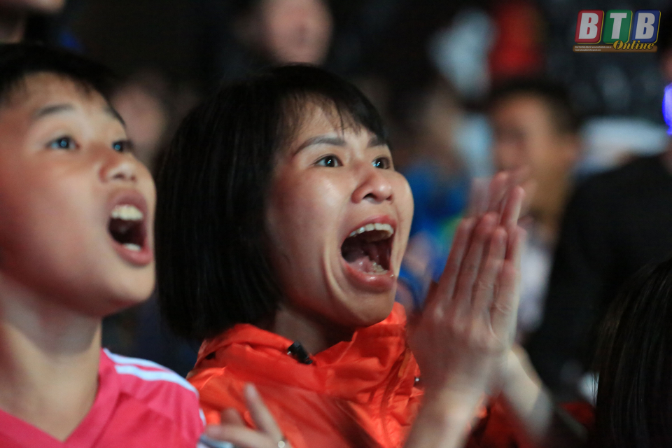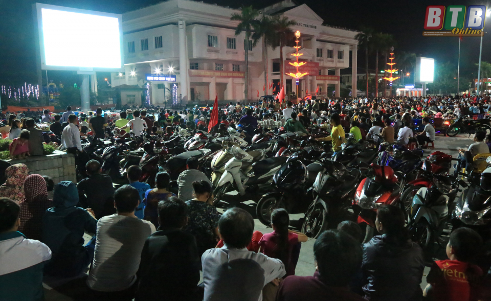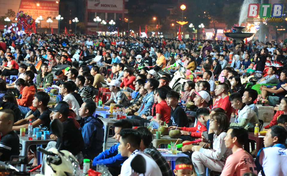 Hàng ngàn cổ động viên theo dõi trận đấu tại Quảng trường 14- 10 thành phố Thái Bình.