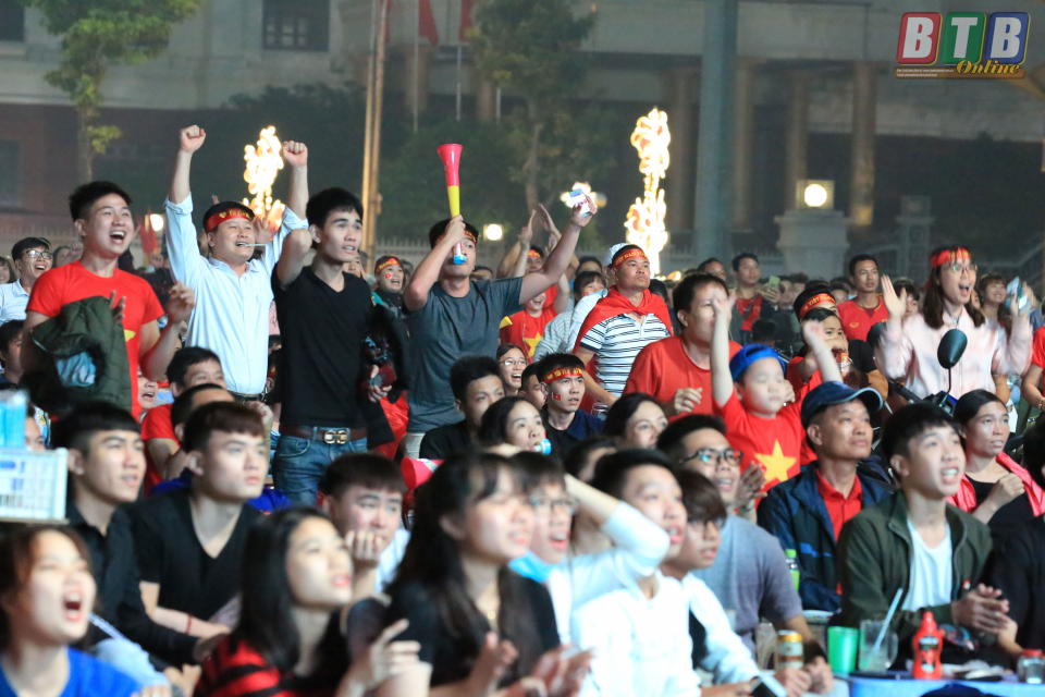 Niềm vui vỡ òa khi Đội tuyển chúng ta có bàn thắng dẫn trước.