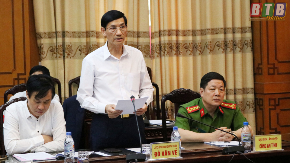 Lãnh đạo Hiệp hội Doanh nghiệp tỉnh phát biểu tại hội nghị. Ảnh: Khắc Duẩn