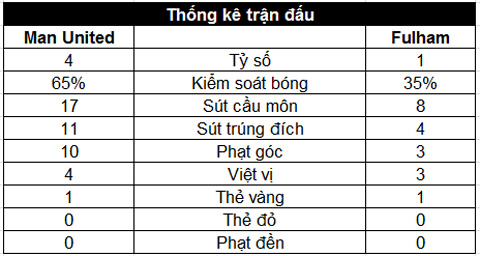 Lợi thế hơn người giúp M.U gia tăng sức ép về phía khung thành Fulham và tới phút 82, Rashford "chốt sổ" bằng bàn thắng ấn định chiến thắng 4-1 cho nửa đỏ thành Manchester - một ngày thi đấu chói sáng của tiền đạo người Anh.
