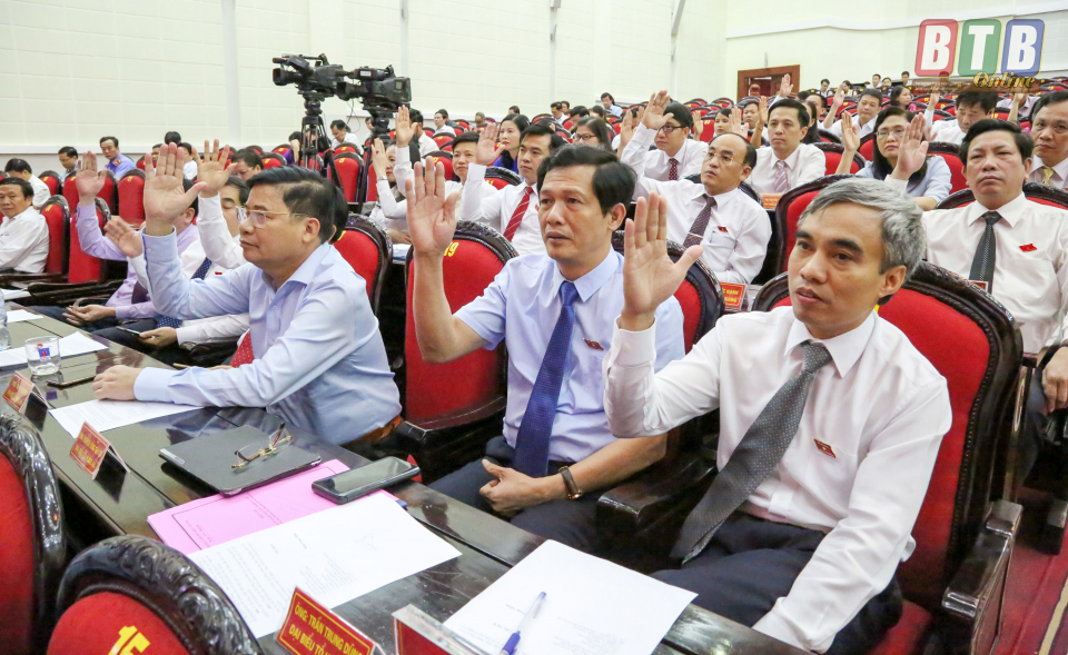 Đại biểu biểu quyết thông qua các nghị quyết tại kỳ họp thứ sáu, HĐND tỉnh khóa XVI, nhiệm kỳ 2016 - 2021.