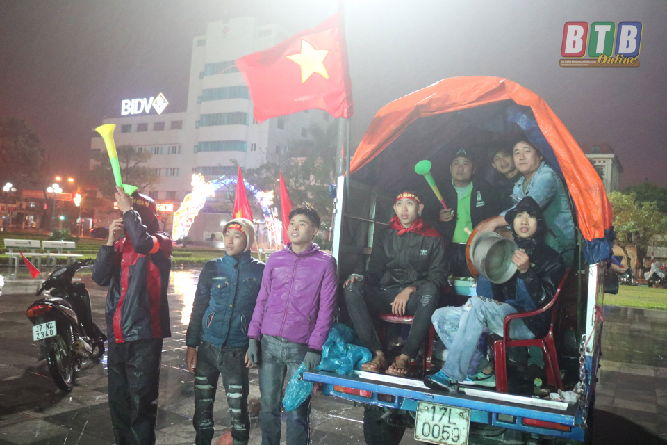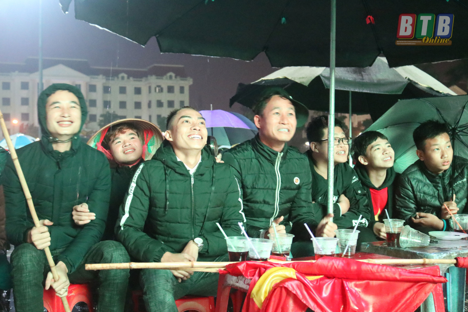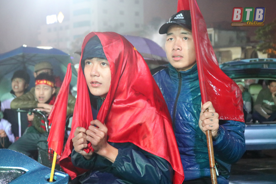 Người hâm mộ Thái Bình đội mưa tiếp lửa cho Đội tuyển Việt Nam