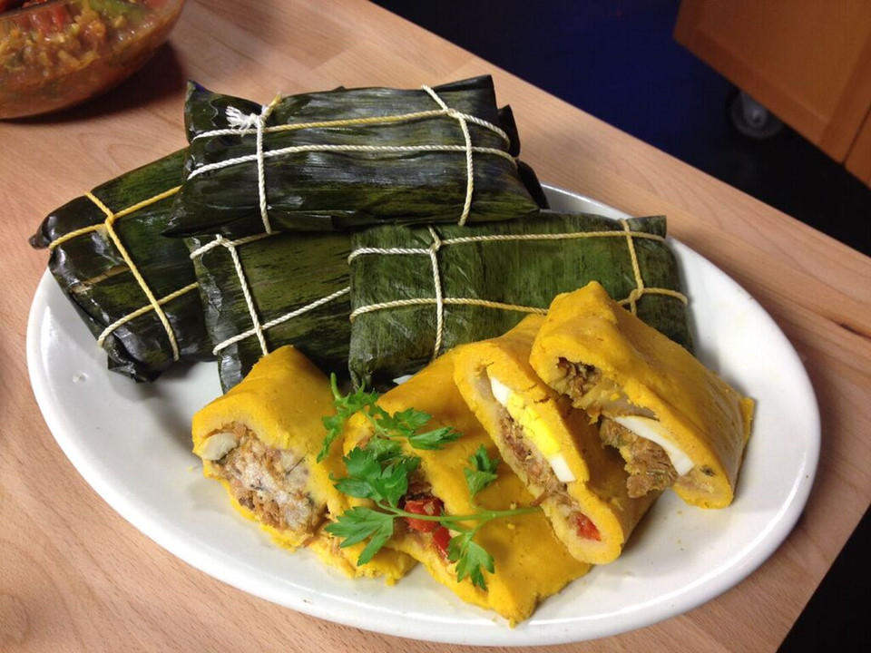 Hallaca (Venezuela): Hallaca là món ăn truyền thống ẩm thực lâu đời và là một trong những biểu tượng tiêu biểu nhất của Venezuela. Người dân nơi đây sẽ dùng bột ngô làm vỏ bánh, nhân bên trong có thể là thịt, nụ bạch hoa, nho khô, olive hoặc hải sản, sau đó gói bằng lá chuối và đem hấp.