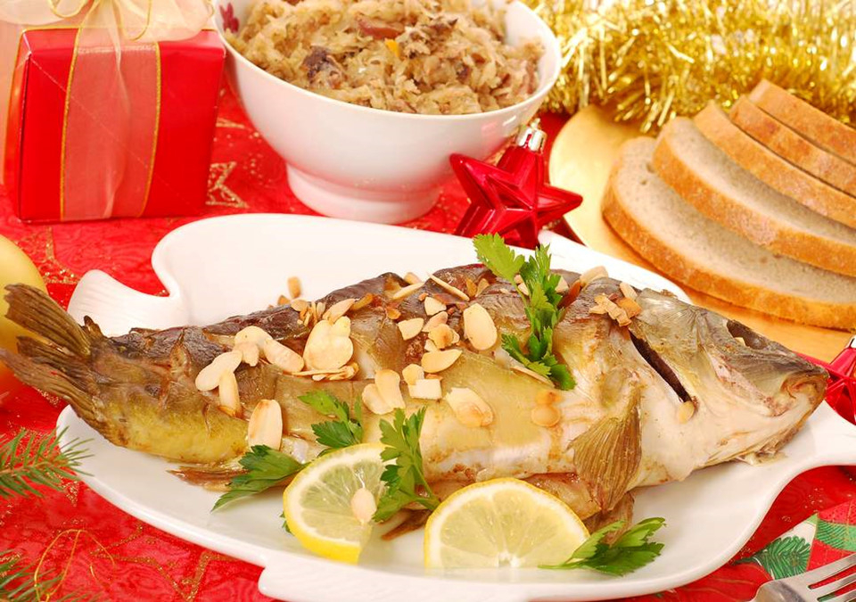 Cá chép (Ba Lan): Ở Ba Lan, cá chép là món ăn tâm điểm của bữa ăn Giáng sinh. Theo truyền thống, để đạt độ tươi tối ưu, cá sẽ được mua trước và giữ sống trong các thùng nước lớn hay bồn tắm cho đến đêm Giáng sinh. Sau đó, người dân ở đây sẽ loại bỏ vảy một cách tinh tế, đem ướp muối và chiên trong dầu olive.
