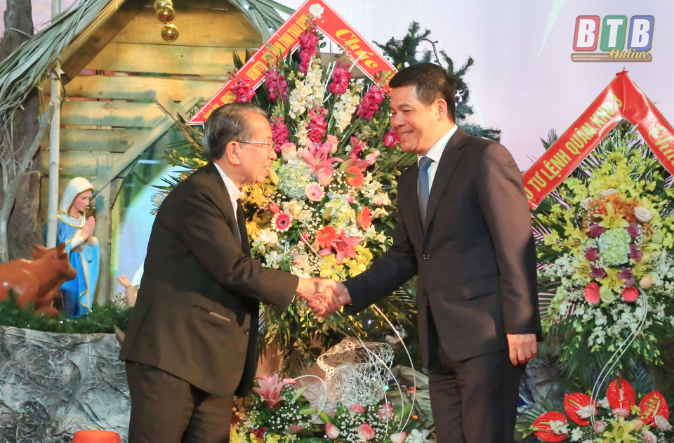 Thay mặt Tỉnh uỷ, HĐND, UBND, Ủy ban MTTQ tỉnh, đồng chí Bí thư Tỉnh ủy, Chủ tịch HĐND tỉnh gửi lời thăm hỏi ân cần, lời chúc mừng Giáng sinh tới Giám mục Nguyễn Văn Đệ, chúc Toà Giám mục và bà con Công giáo trong tỉnh đón một mùa Giáng sinh an lành và hạnh phúc.