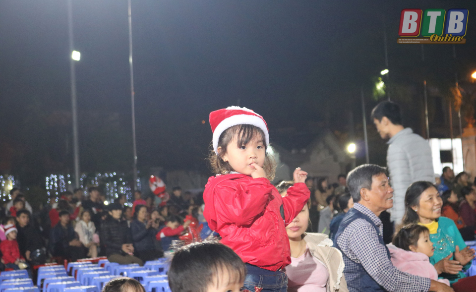 Một ông già Noel nhí đang chăm chú xem các tiết mục văn nghệ tại Nhà thờ chính tòa Thái Bình.