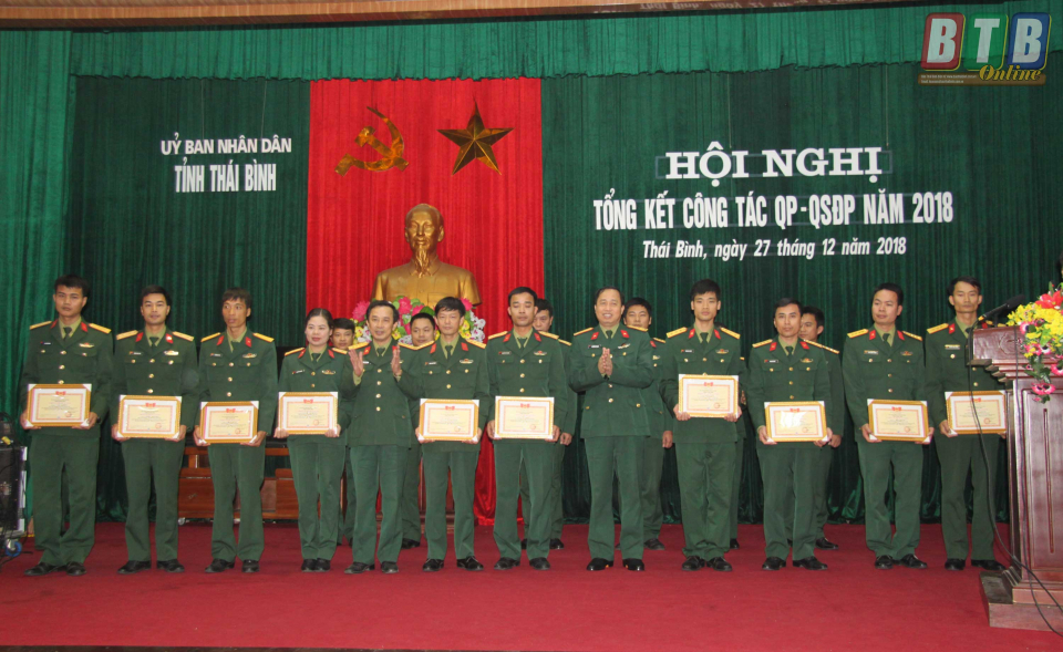 Năm 2018, Tỉnh ủy, HĐND, UBND tỉnh đã lãnh đạo, chỉ đạo thực hiện nghiêm túc, toàn diện công tác QSQPĐP. Hội đồng Giáo dục quốc phòng - an ninh tỉnh đã chỉ đạo và triển khai tổ chức bồi dưỡng kiến thức quốc phòng - an ninh cho các đối tượng đạt 100% kế hoạch. Công tác xây dựng lực lượng thường trực, lực lượng dân quân tự vệ đủ về số lượng, chất lượng ngày càng được nâng cao. Bộ CHQS tỉnh tăng cường các biện pháp nắm bắt tình hình, phối hợp giải quyết kịp thời những vấn đề phức tạp phát sinh, không để bị động bất ngờ. LLVT tỉnh thực hiện tốt nhiệm vụ phát triển kinh tế - xã hội gắn với củng cố quốc phòng - an ninh; xây dựng cơ sở chính trị vững mạnh toàn diện, làm nòng cốt xây dựng tỉnh thành khu vực phòng thủ vững chắc. Trong năm, đã chỉ đạo hai huyện Thái Thụy và Vũ Thư tổ chức tốt cuộc diễn tập khu vực phòng thủ huyện, bảo đảm an toàn tuyệt đối. Công tác tuyển chọn, gọi công dân nhập ngũ năm 2018 được tổ chức chặt chẽ, bàn giao 2.650 tân binh, hoàn thành 100% chỉ tiêu, chất lượng cao. Các ngành, các địa phương thực hiện hiệu quả chủ trương, chính sách của Đảng, Nhà nước đối với người có công, chính sách hậu phương quân đội, nhất công tác tìm kiếm, quy tập hài cốt liệt sĩ, chi trả chế độ cho các đối tượng...