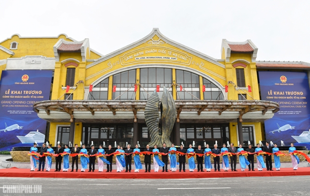 Thủ tướng cắt băng khánh thành Cảng tàu khách quốc tế Hạ Long. - Ảnh: VGP/Quang Hiếu