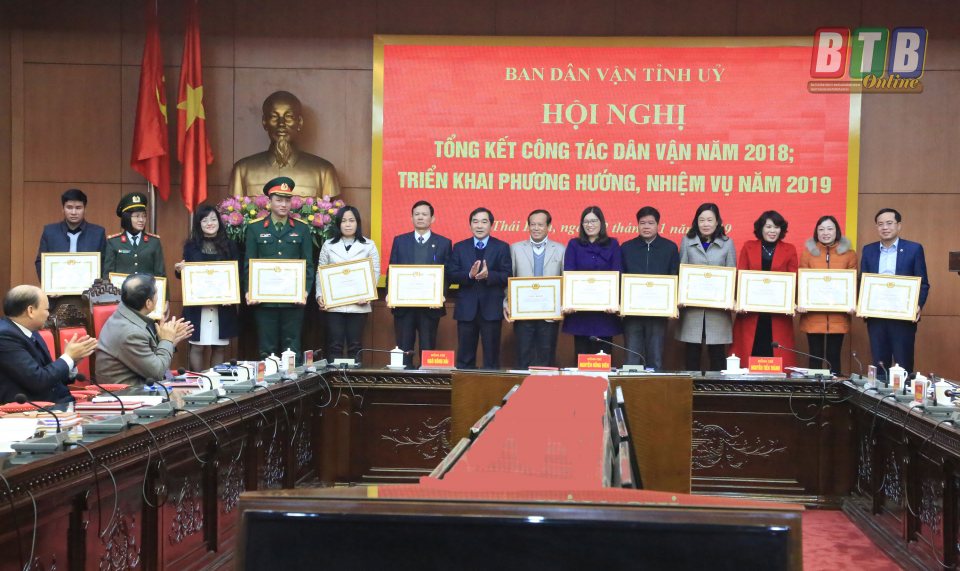 Nhân dịp này, Ban Dân vận Tỉnh ủy đã khen thưởng 29 tập thể, cá nhân có thành tích xuất sắc trong thực hiện công tác dân vận và phong trào thi đua "Dân vận khéo” năm 2018.