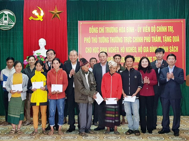 Tiếp đó, Phó Thủ tướng đã thăm, tặng 150 suất quà cho học sinh nghèo và các hộ nghèo, hộ gia đình chính sách của huyện, tặng năm bộ máy tính cho các trường học trên địa bàn huyện Đakrông.