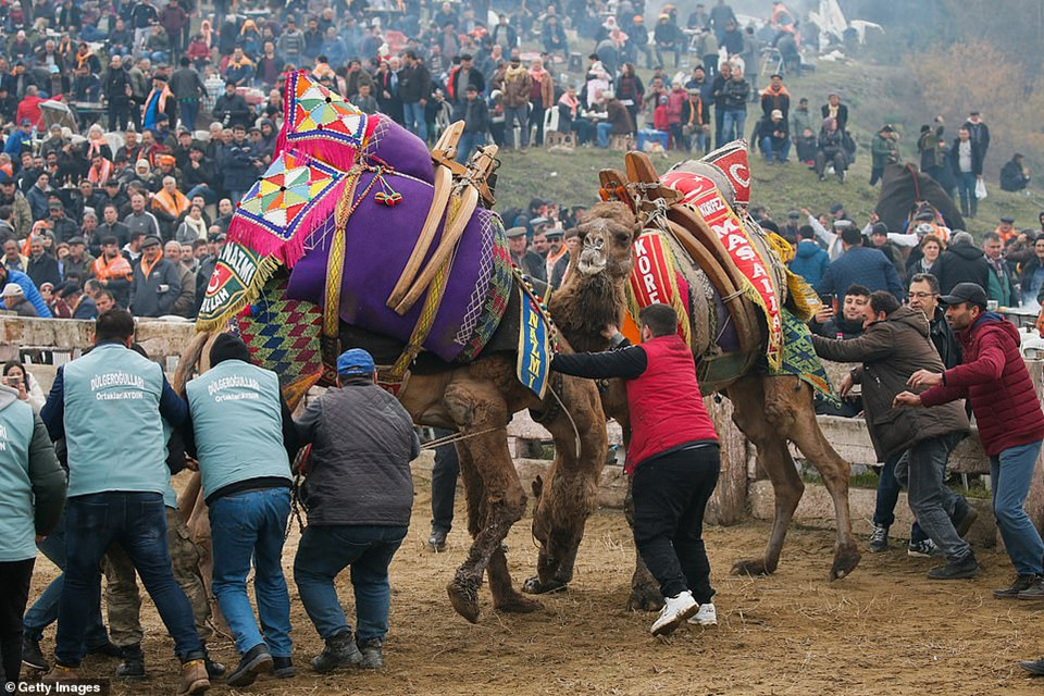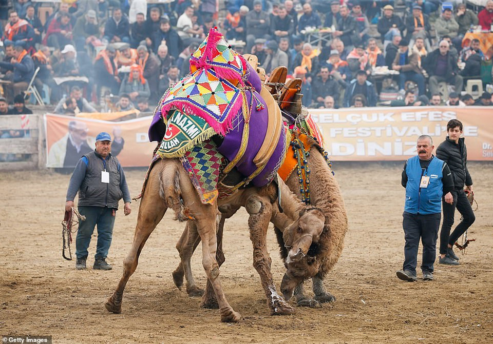 Những con lạc đà tham gia đấu vật tại đấu trường Pamucak trong Lễ hội đấu vật lạc đà Selcuk-Efes hàng năm ở thị trấn Selcuk, Thổ Nhĩ Kỳ. Vào chủ nhật thứ ba của mỗi tháng 1, người dân Selcuk ở Thổ Nhĩ Kỳ lại tụ tập để trải nghiệm giải đấu vật lạc đà theo truyền thống độc đáo của địa phương.