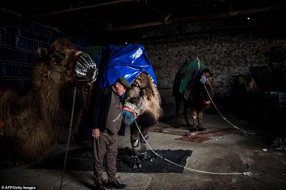 Suleyman Cobanoglu, 60 tuổi, vỗ về con lạc đà của mình trước lễ hội đấu vật lạc đà Selcuk ở thị trấn Selcuk. Lễ hội lạc đà tiếp theo của năm 2019 sẽ bắt đầu vào ngày 20/12.