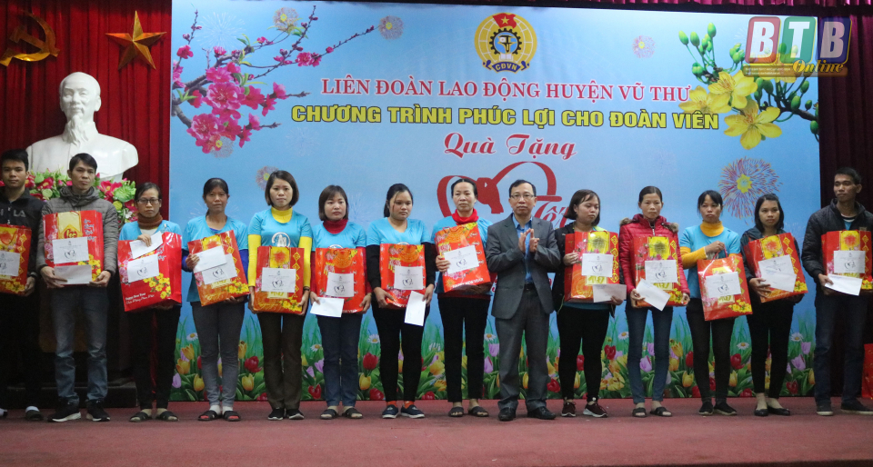 Tại chương trình, đồng chí Phó Chủ tịch UBND tỉnh cùng các đồng chí lãnh đạo huyện Vũ Thư đã trao 150 suất quà tết cho 150 CNVCLĐ có hoàn cảnh khó khăn, trong đó 100 suất từ nguồn kinh phí của Liên đoàn Lao động tỉnh, 50 suất từ nguồn kinh phí của Liên đoàn Lao động và Ủy ban MTTQ huyện Vũ thư, mỗi suất 300 nghìn đồng tiền mặt và một túi quà trị giá 172 nghìn đồng.