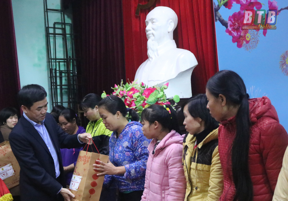 Lãnh đạo Liên đoàn Lao động huyện Vũ Thư trao quà tết cho công nhân lao động có hoàn cảnh khó khăn.