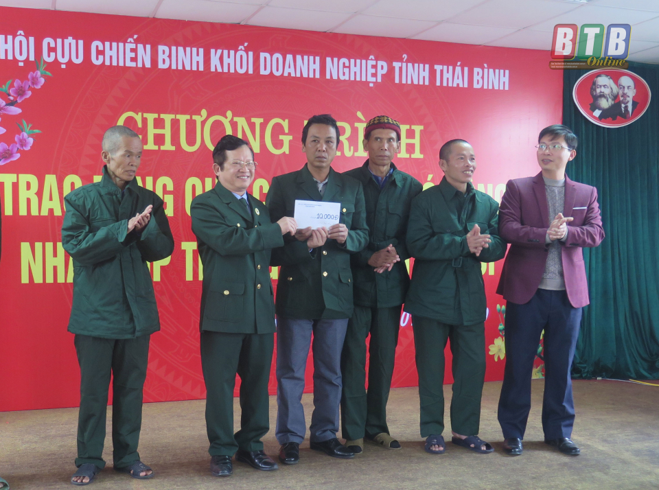 Hội Cựu chiến binh Khối Doanh nghiệp và Hội Cựu chiến binh Ngân hàng Chính sách tỉnh tặng quà cho các đối tượng.