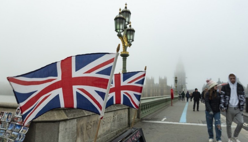 Người dân đi bộ trên cầu Westminster trong màn sương mù ở London, Vương quốc Anh, ngày 19/12/2021. (Ảnh: Tân Hoa xã)